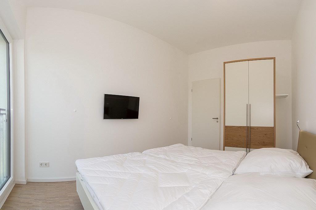 Das Nichtraucher-Penthouse mit Sauna und Fußbodenheizung besteht aus zwei Schlafzimmern mit jeweils einem Doppelbett und Flatscreen-TV, einem Wohnbereich mit Doppelschlafcouch (2 x 0,90 m x 2,00 m), Kamin (Kaminholz ist nicht inbegriffen), TV-HiFi-Anlage und Flatscreen-TV mit Blu-ray/DVD-Player, einem Bad mit Dusche, Whirlbadewanne und separatem WC, einer Dachterrasse mit Ostseeblick und Strandkorb sowie einem Balkon mit seitlichem Meerblick.