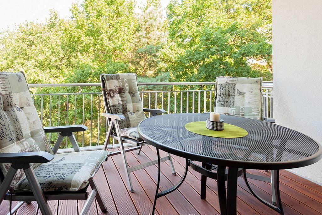Die exklusive Ferienwohnung befindet sich im 2. Obergeschoss auf der Westseite der Anlage, die 2014 entstand. In nur 150 Metern erreicht ihr den Ostseestrand und die Binzer Seebrücke.