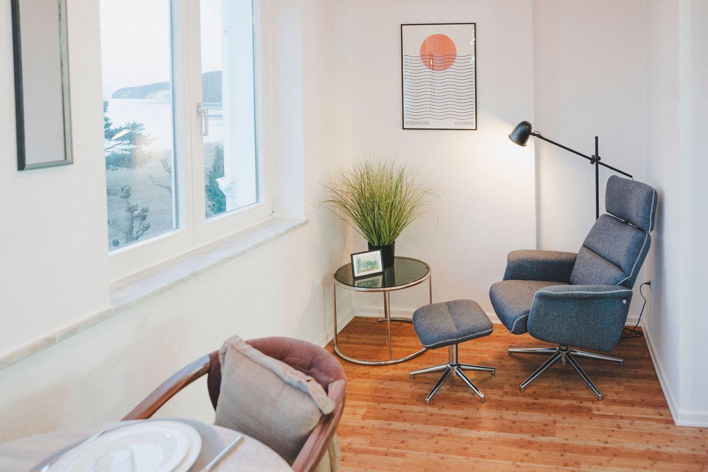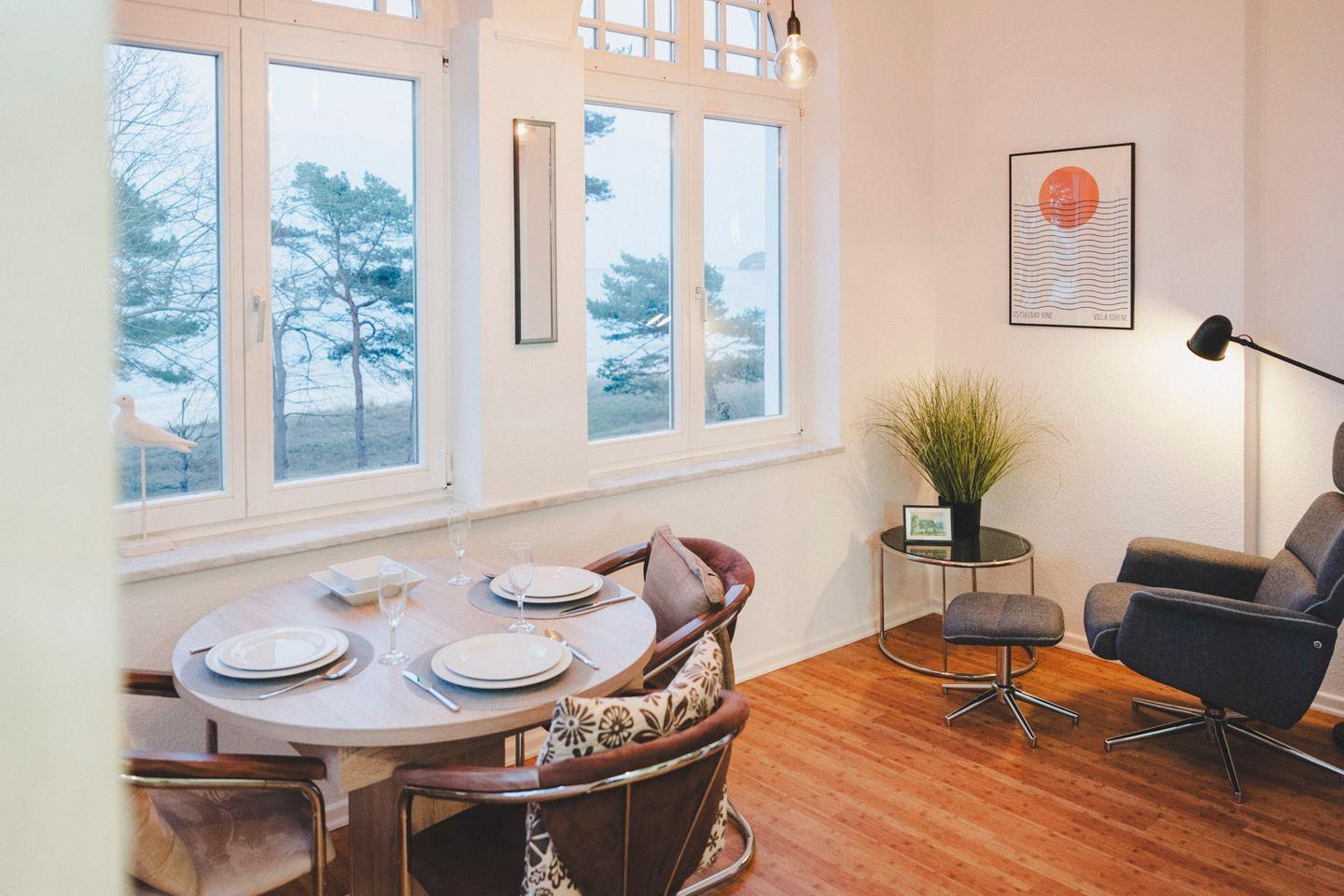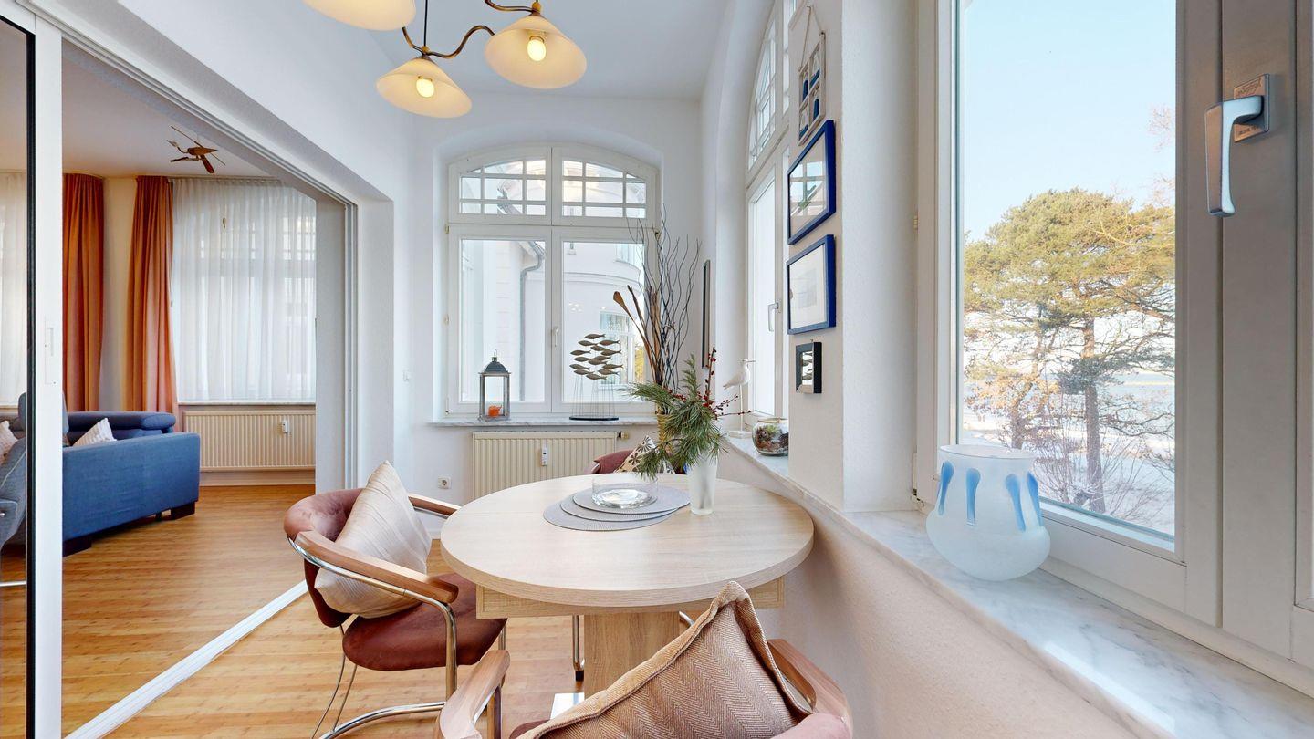 In außergewöhnlich guter Lage mit Meerblick, wartet diese Wohnung mit Wohnzimmer, separater Küche und praktischer Ausstattung (Spülmaschine, WLAN) auf Sie. Der Wintergarten mit Essplatz lädt besonders zum gemütlichen Verweilen ein. Eine wohnliche Wohlfühlbasis – nah an Meer und Strand.