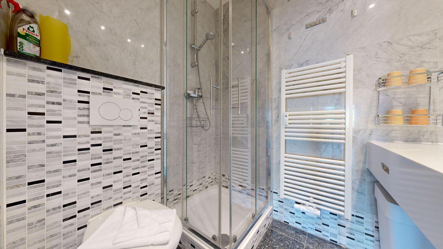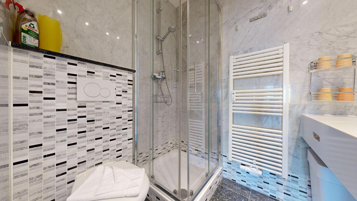 * 1 Badezimmer mit Dusche, WC und Föhn