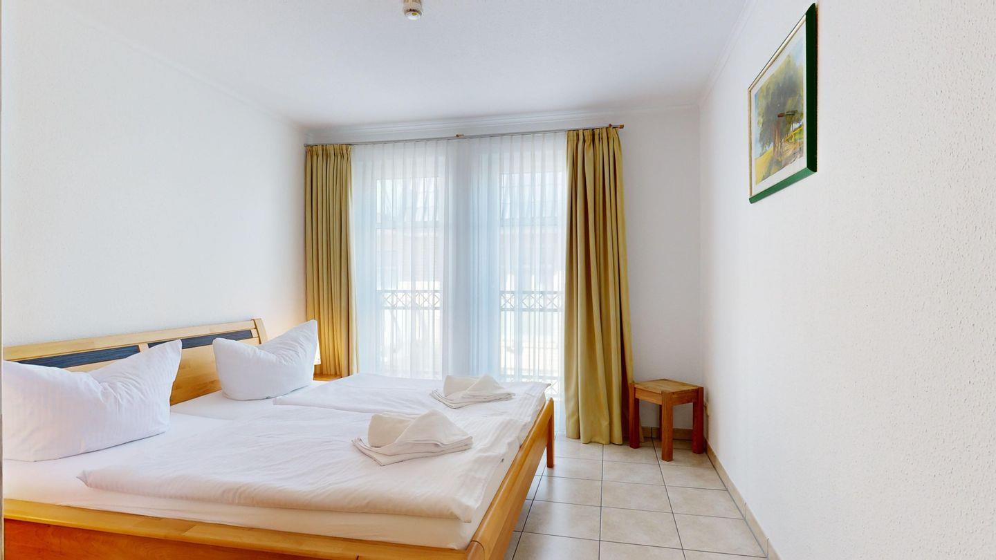 * 1 Schlafzimmer mit einem Doppelbett (2 x 90 x 200 cm), Schrank und großen Fenstern