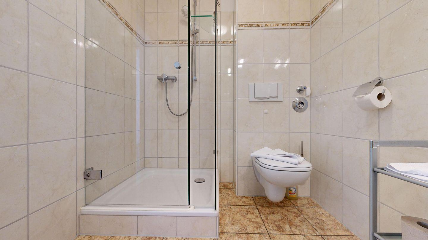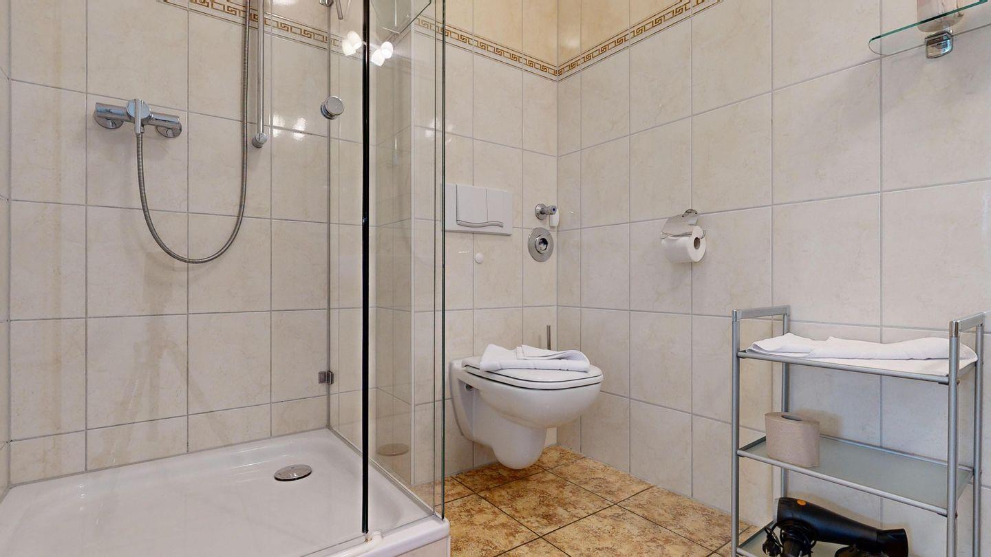 * 1 Badezimmer mit Dusche, WC und Föhn