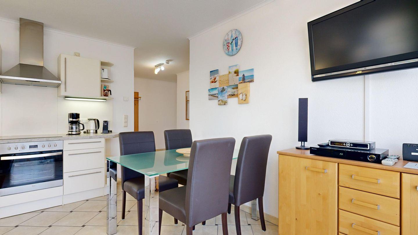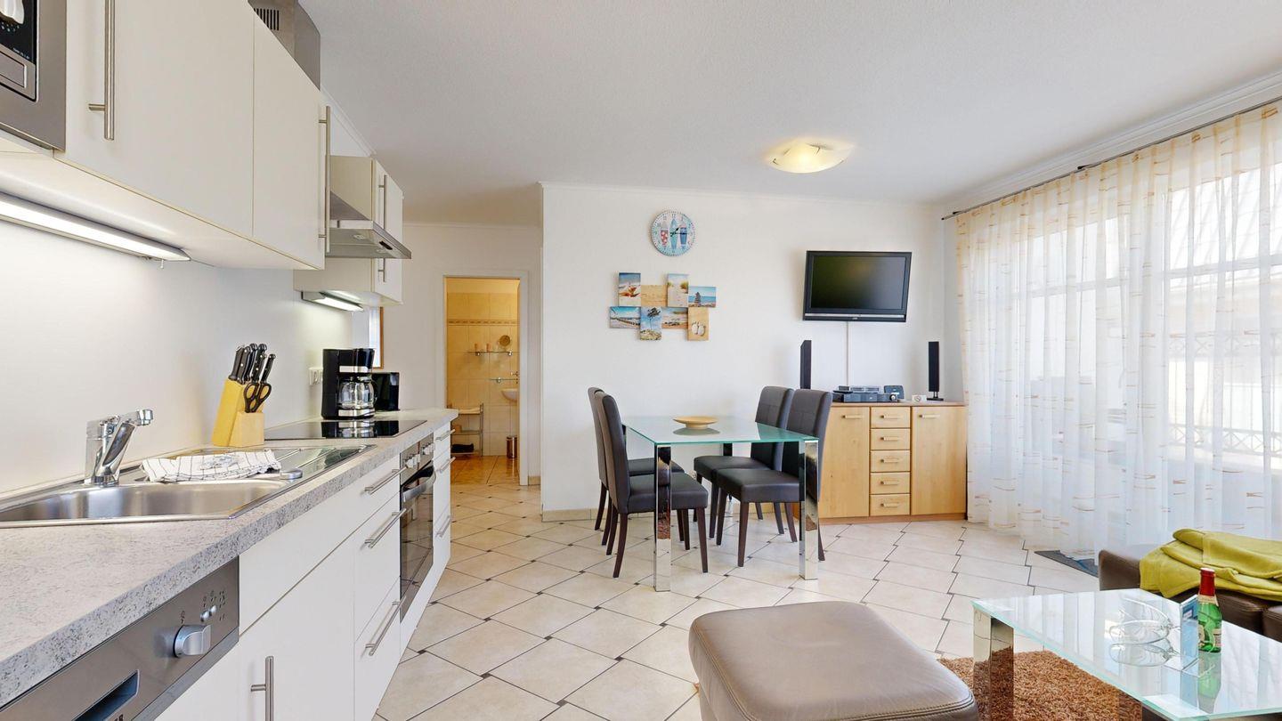 Komfort in bester Lage: Entspannen Sie in der hauseigenen Sauna, parken Sie bequem in der Tiefgarage und genießen Sie Ihren eigenen Strandkorb direkt am Strand. Die großzügige Wohnung verfügt über zwei Schlafzimmer. Hier wird jeder Urlaubstag zum kleinen Highlight.