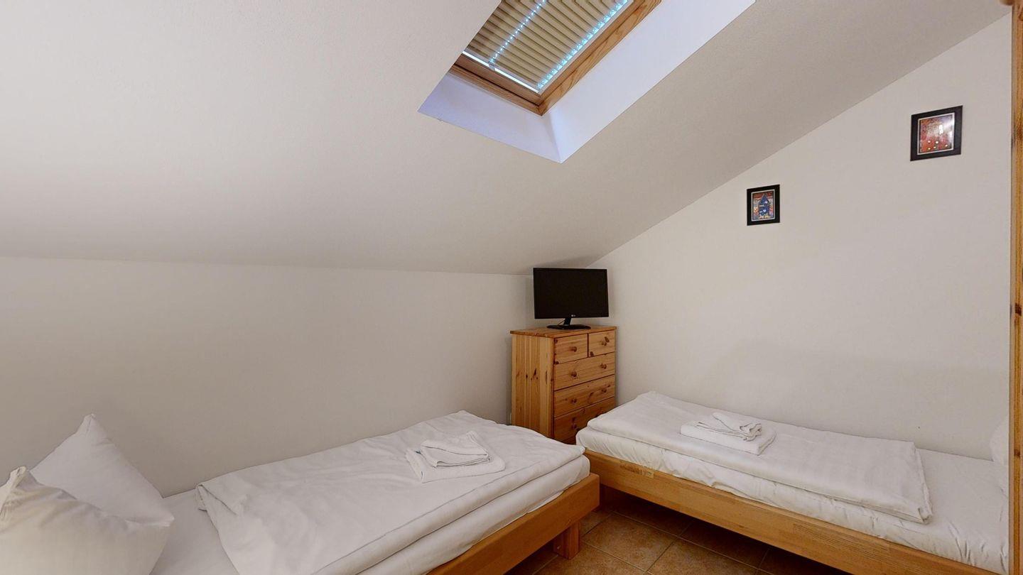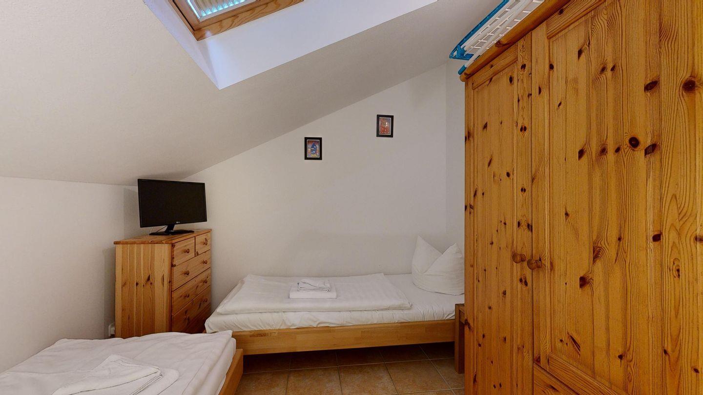 * 1 Schlafzimmer mit 2 Einzelbetten, kl. TV, Schrank