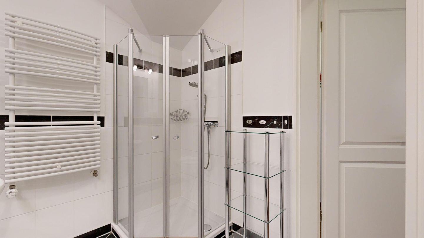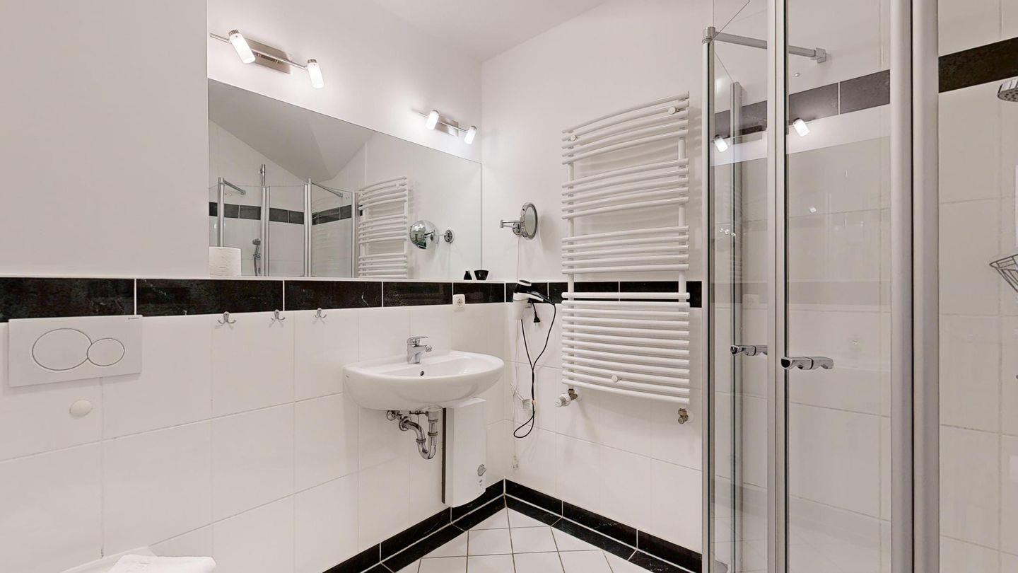 * Badezimmer mit Dusche, WC und Föhn