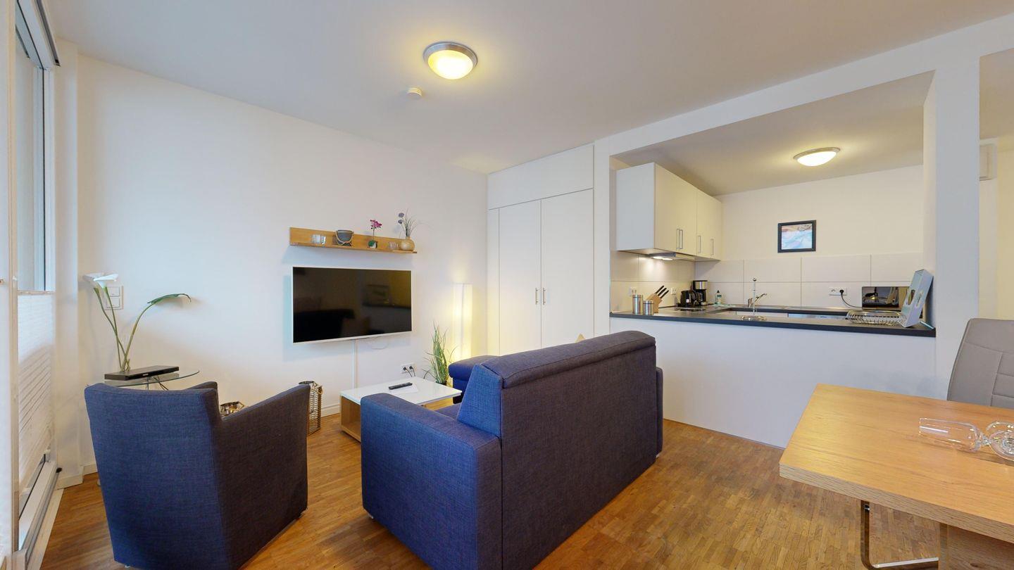 * Freundliches, helles Wohnzimmer mit Südwest-Balkon mit gemütlicher Couchgarnitur (Schlafgelegenheit für 1-2 Pers. 140 cm x 200 cm), Kabel-TV, DVD-Player, Internetzugang (WLAN inkl.), Esstisch