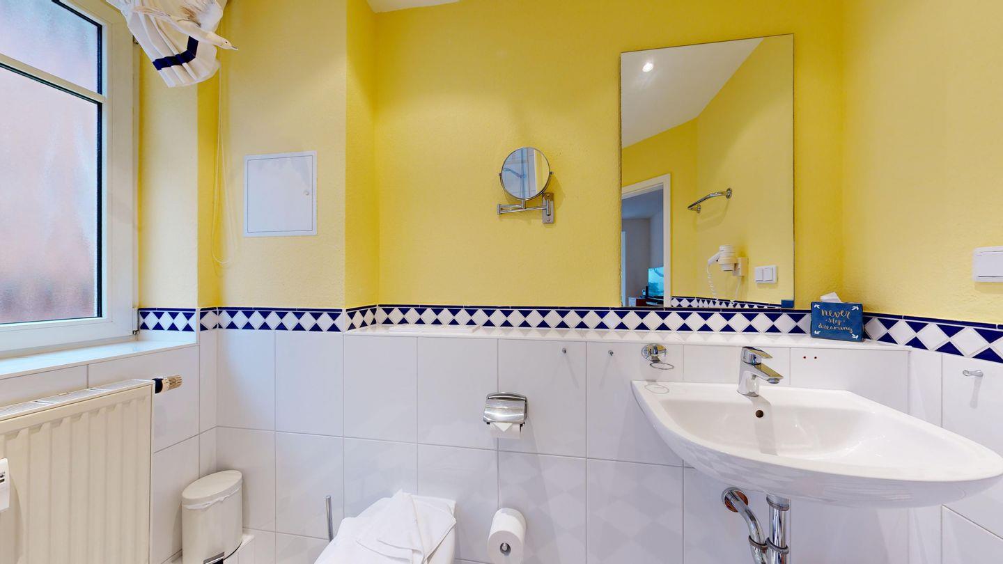 * 1 Badezimmer mit Dusche, WC und Föhn