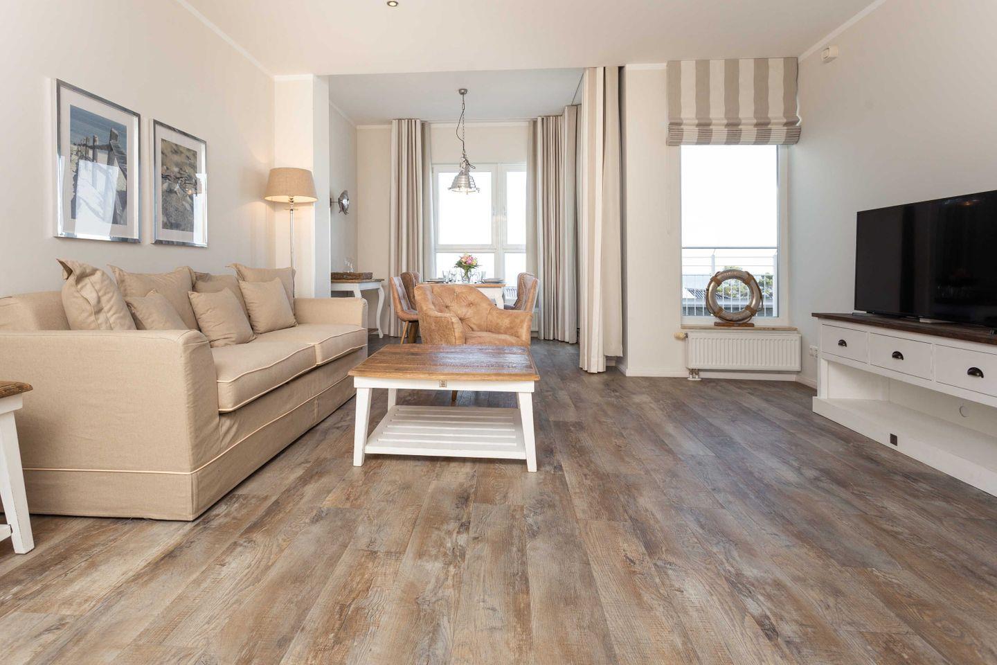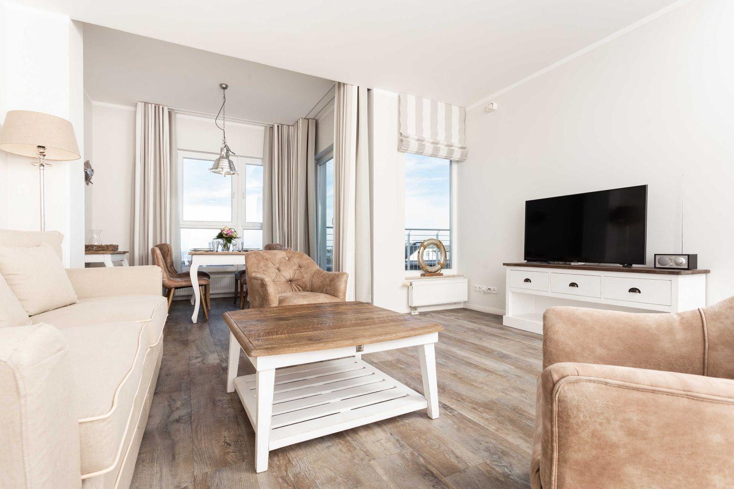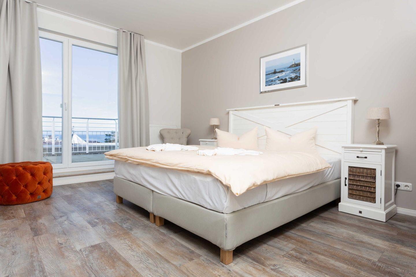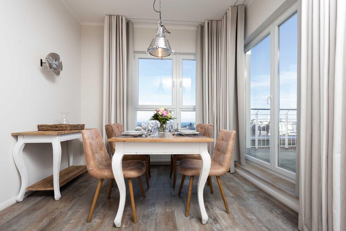 Exklusive Ferienwohnung mit großer Sonnenterrasse und hochwertiger Möblierung für 2-4 Personen im 4. OG mit 1 Schlafzimmer (2 Zimmer / 71 m²):