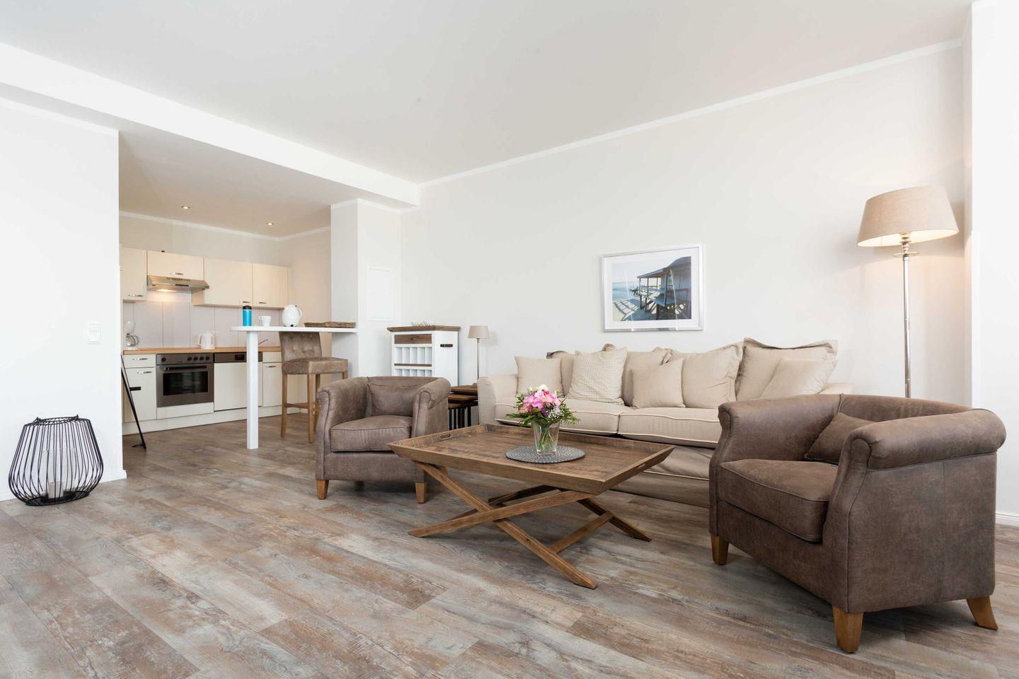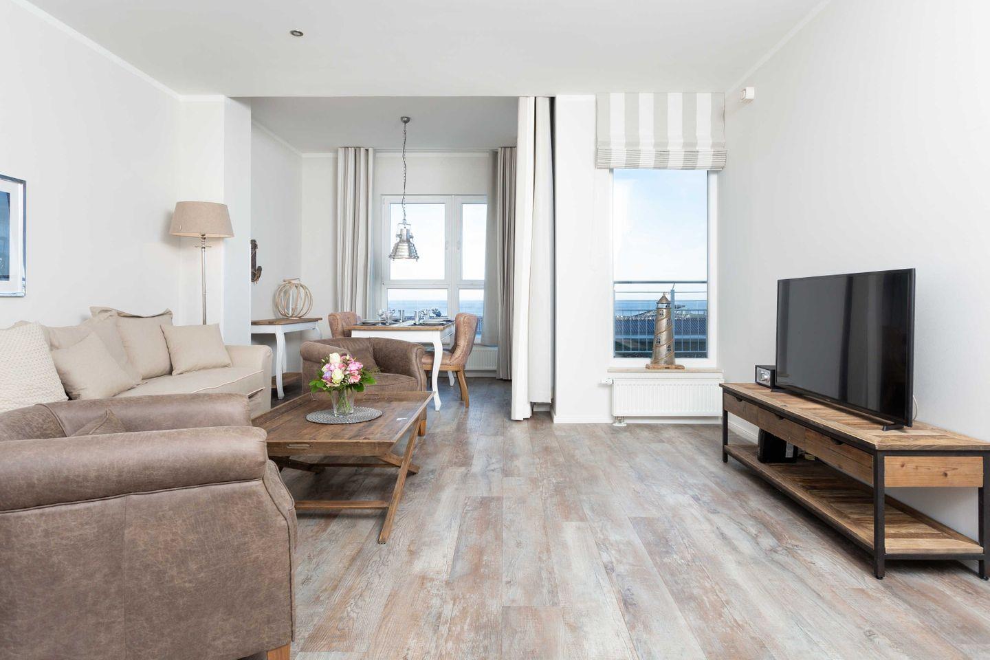 Exklusive Ferienwohnung mit großer Sonnenterrasse und hochwertiger Möblierung für 2-4 Personen im 4. OG mit 1 Schlafzimmer (2 Zimmer / 71 m²):
