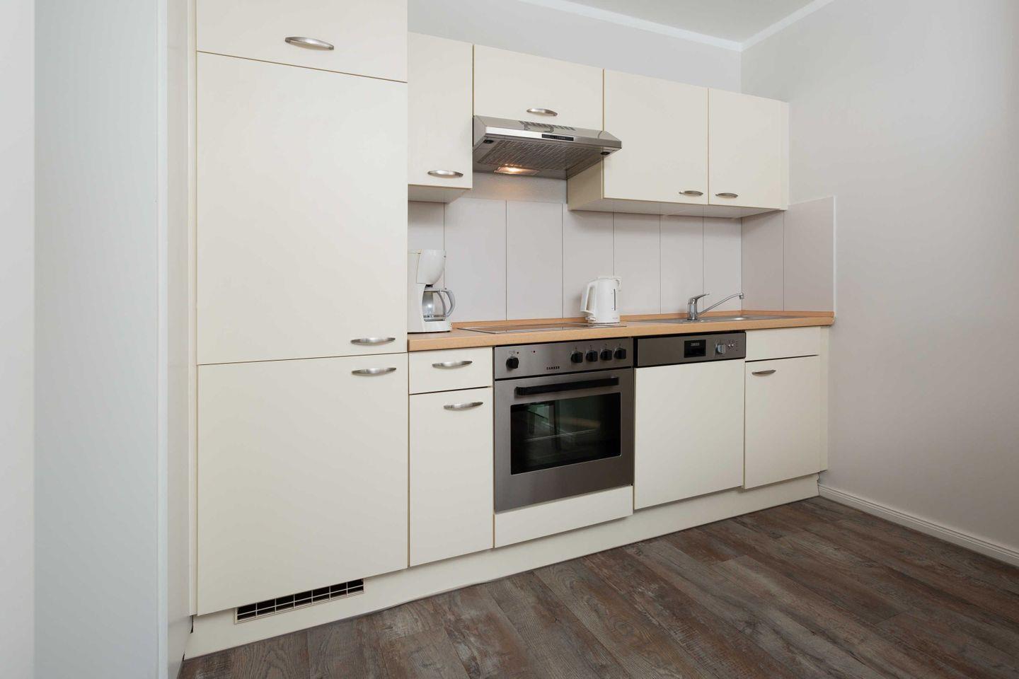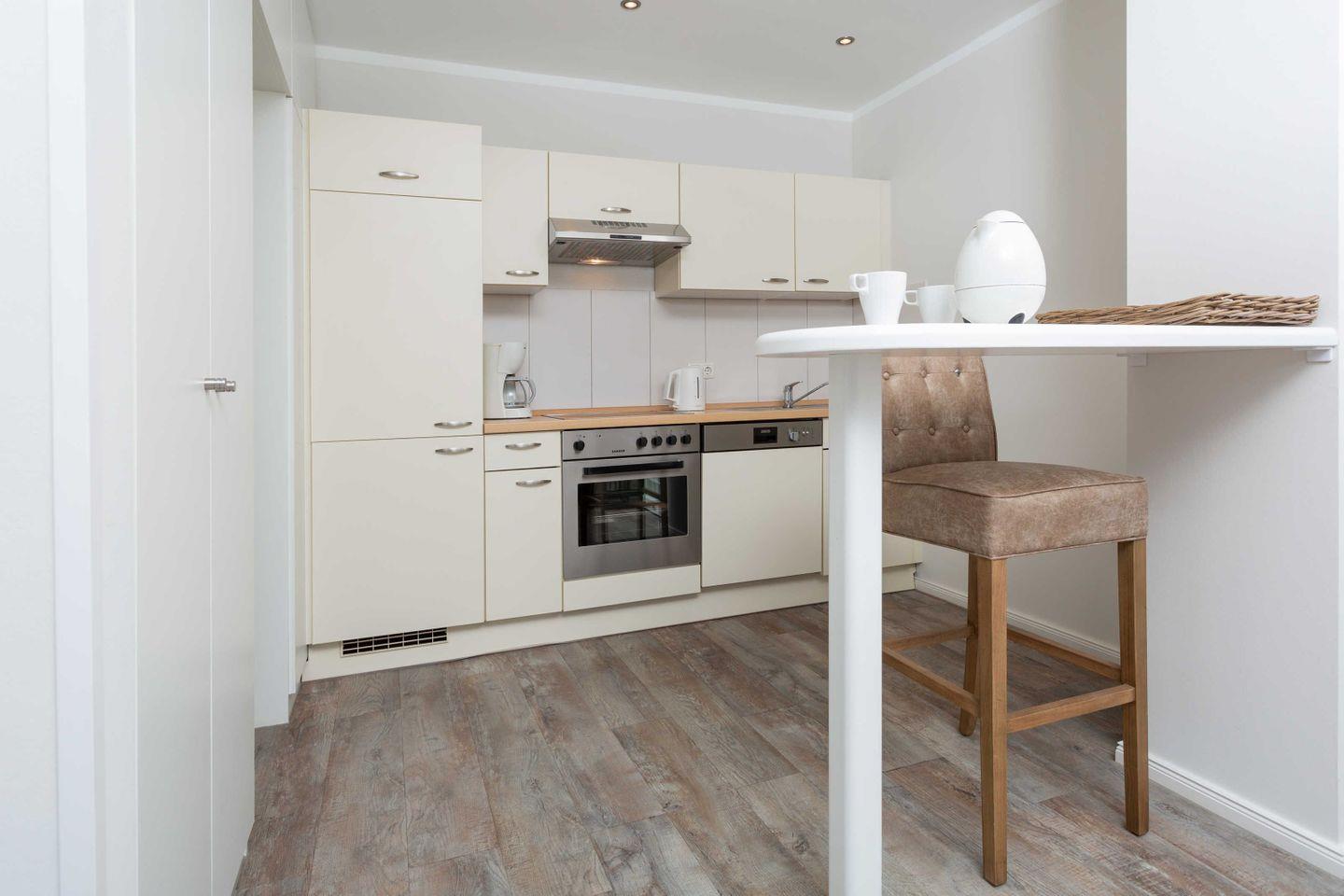 * Küche mit Ceranfeld, Kühlschrank mit Gefrierfach, Backofen, Spülmaschine, Toaster, Wasserkocher, Kaffeemaschine