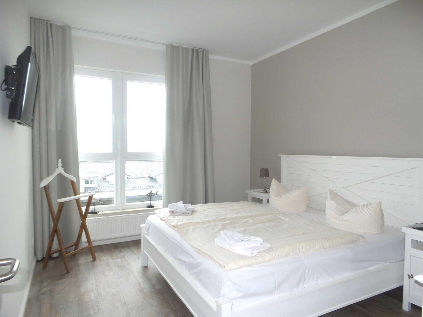* 1 Schlafzimmer mit einem Doppelbett, Kleiderschrank, Kabel-TV