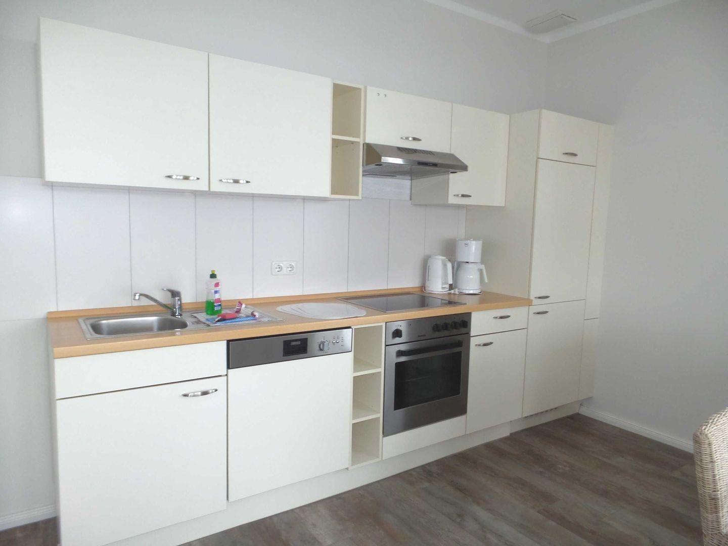 * Küche mit Ceranfeld, Kühlschrank, Backofen, Spülmaschine, Toaster, Wasserkocher, Kaffeemaschine
