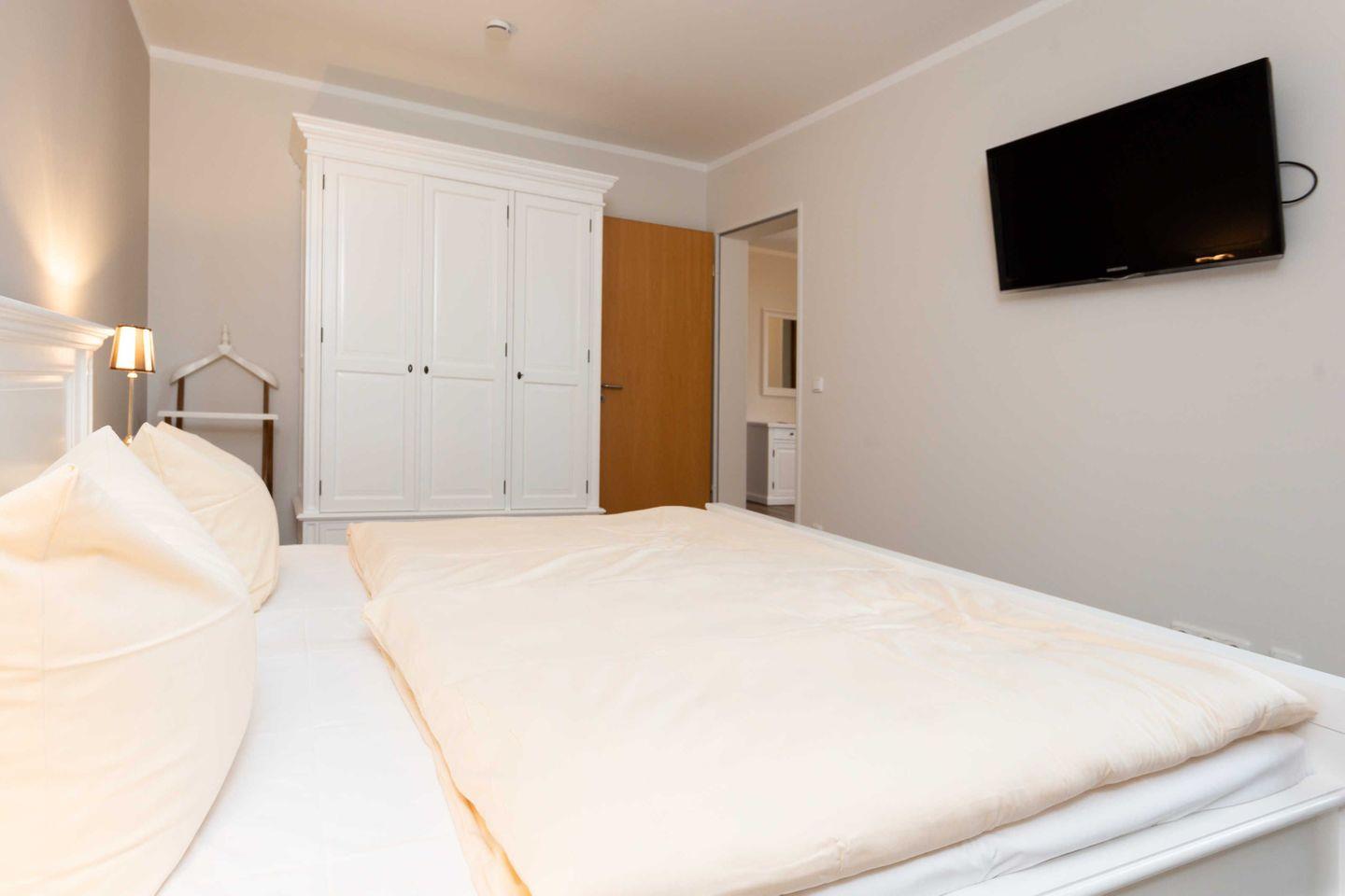 * 1 Schlafzimmer mit einem Doppelbett, Kleiderschrank und TV