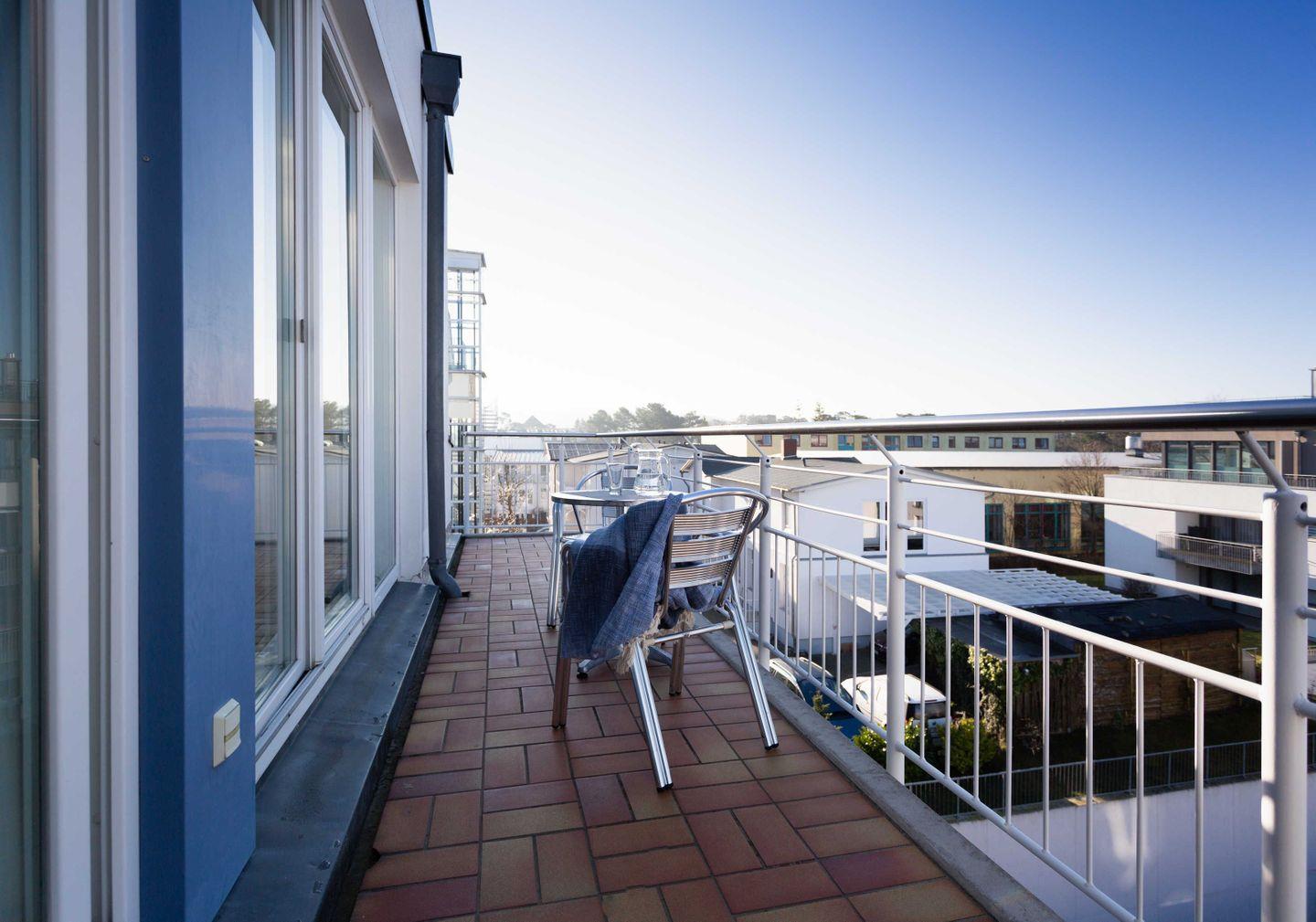 * 12 m² großer Südbalkon mit Balkonmöbeln (Südwest-Ausrichtung)