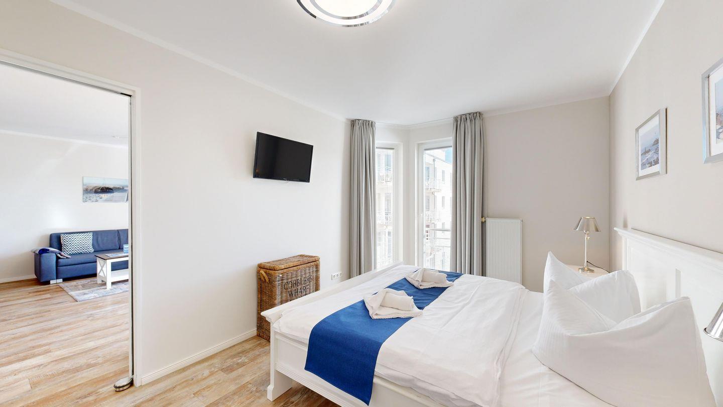 * 1 Schlafzimmer mit einem Doppelbett, Kleiderschrank, TV