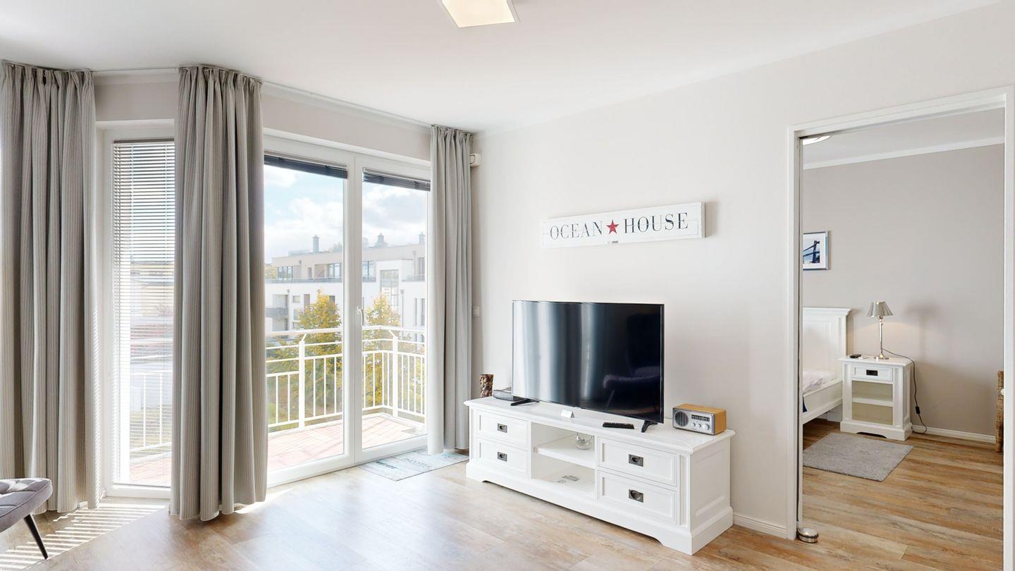 Ferienwohnung mit Balkon für 3-4 Personen; Komfort-Ausstattung der Wohnung im 2. OG mit 1 Schlafzimmer (2 Zimmer / 55 m²):