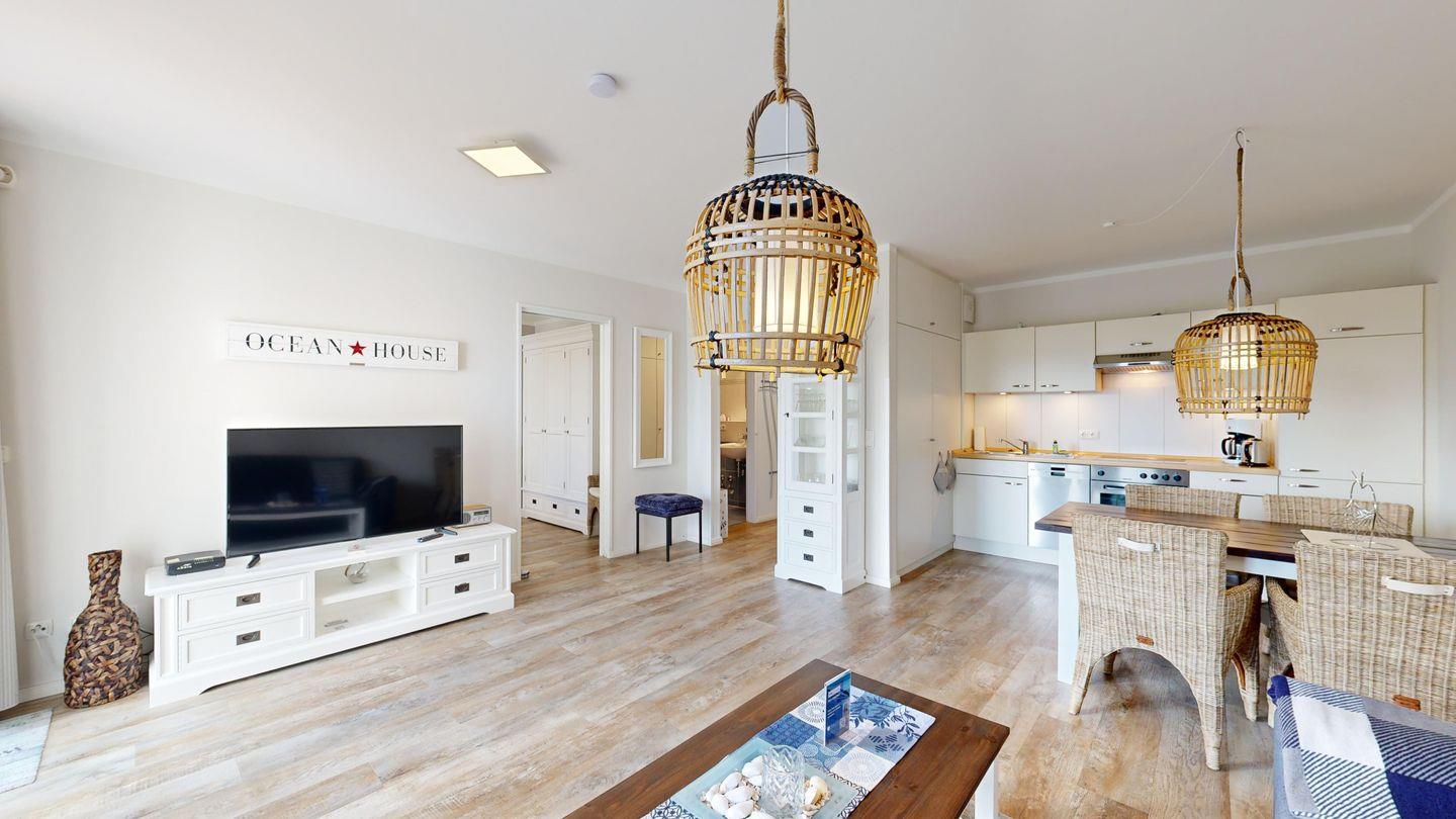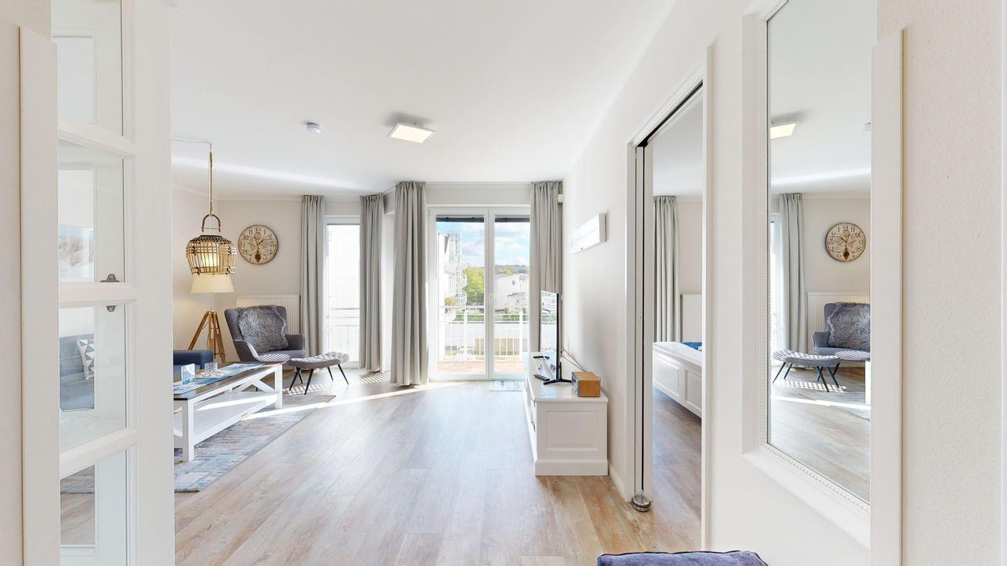 Das Bel Vital in Binz vereint moderne Exklusivität mit einer Traumlage nur wenige Schritte vom Strand – perfekt für alle, die Komfort und Entspannung suchen. Ein Fahrstuhl, Tiefgarage, Sauna und Fitnessraum im Haus sorgen zusätzlich für ein rundum angenehmes Urlaubserlebnis.