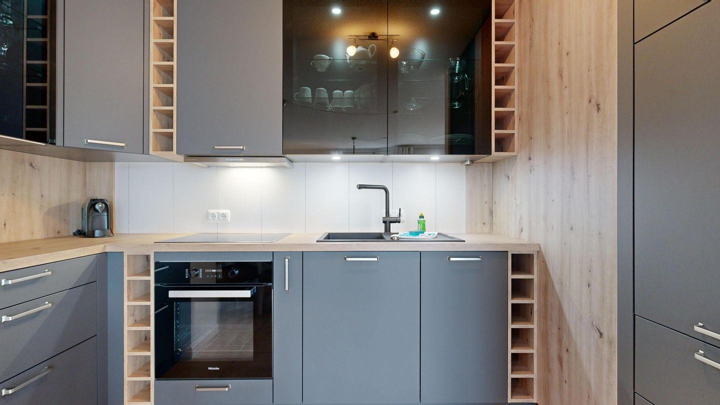 * neue Küche mit Ceranfeld, Kühlschrank mit Gefrierfach, Backofen, Spülmaschine, Toaster, Wasserkocher, Kaffeemaschine (alle Geräte sind von Miele)