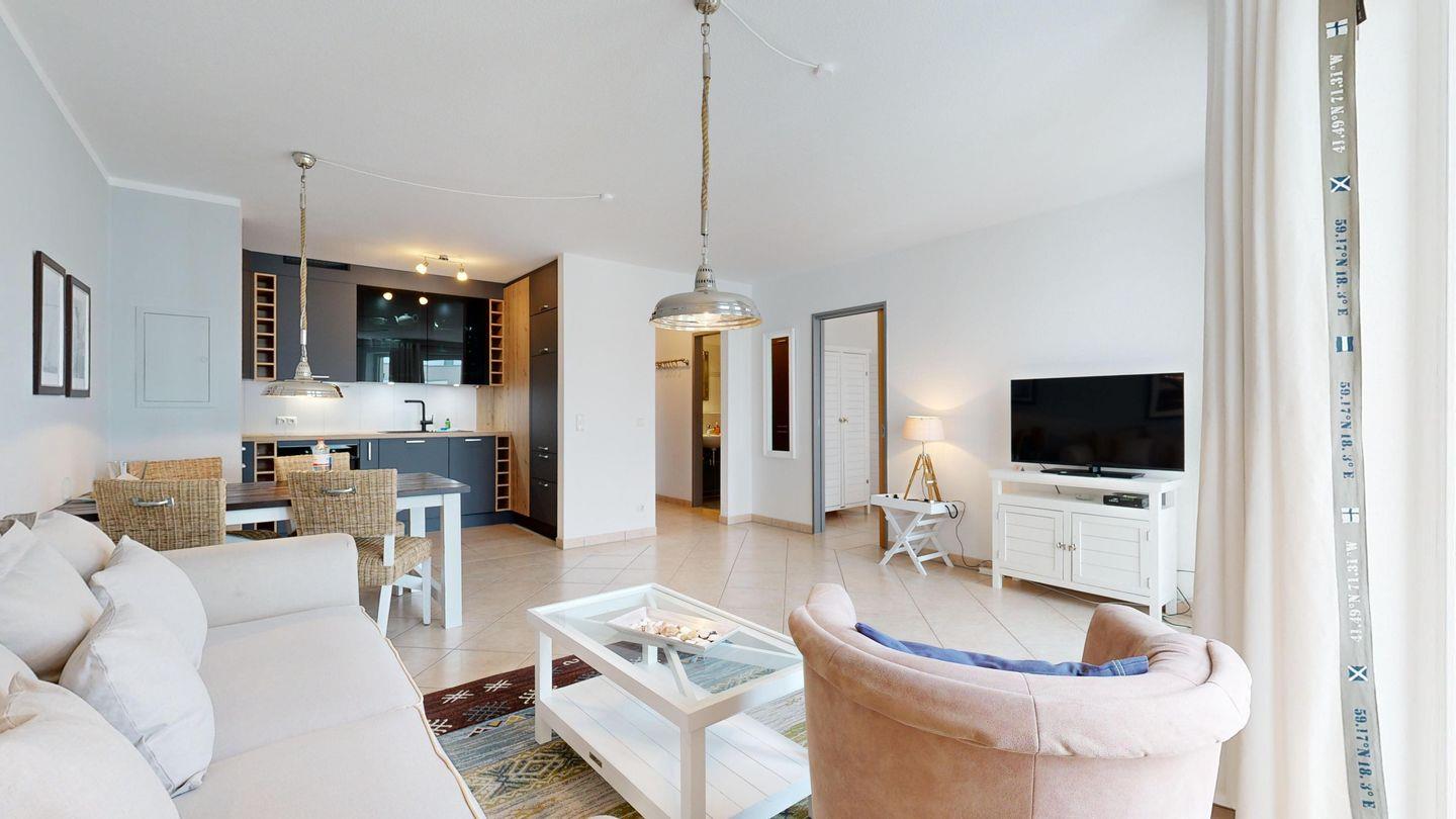 Das Bel Vital in Binz vereint moderne Exklusivität mit einer Traumlage nur wenige Schritte vom Strand – perfekt für alle, die Komfort und Entspannung suchen. Ein Fahrstuhl, Tiefgarage, Sauna und Fitnessraum im Haus sorgen zusätzlich für ein rundum angenehmes Urlaubserlebnis.