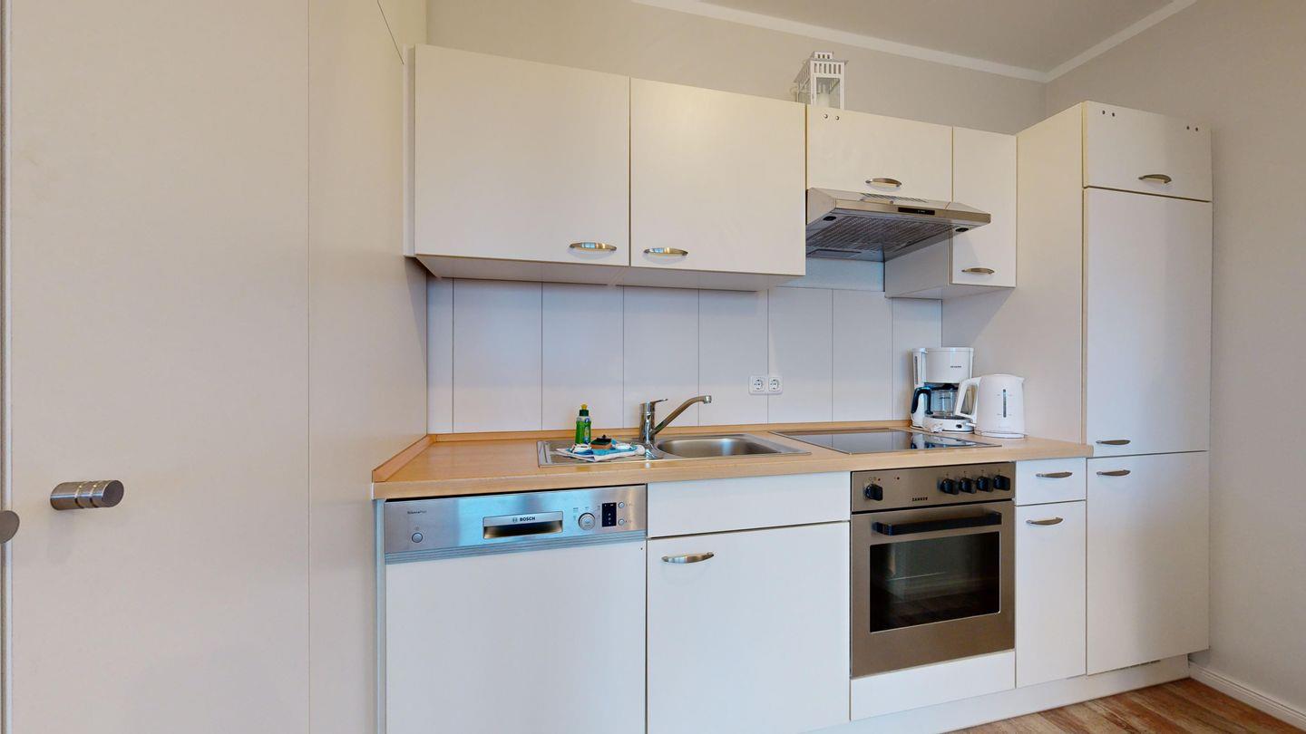 * Küche mit Ceranfeld, Kühlschrank mit Gefrierfach, Backofen, Spülmaschine, Toaster, Wasserkocher, Kaffeemaschine