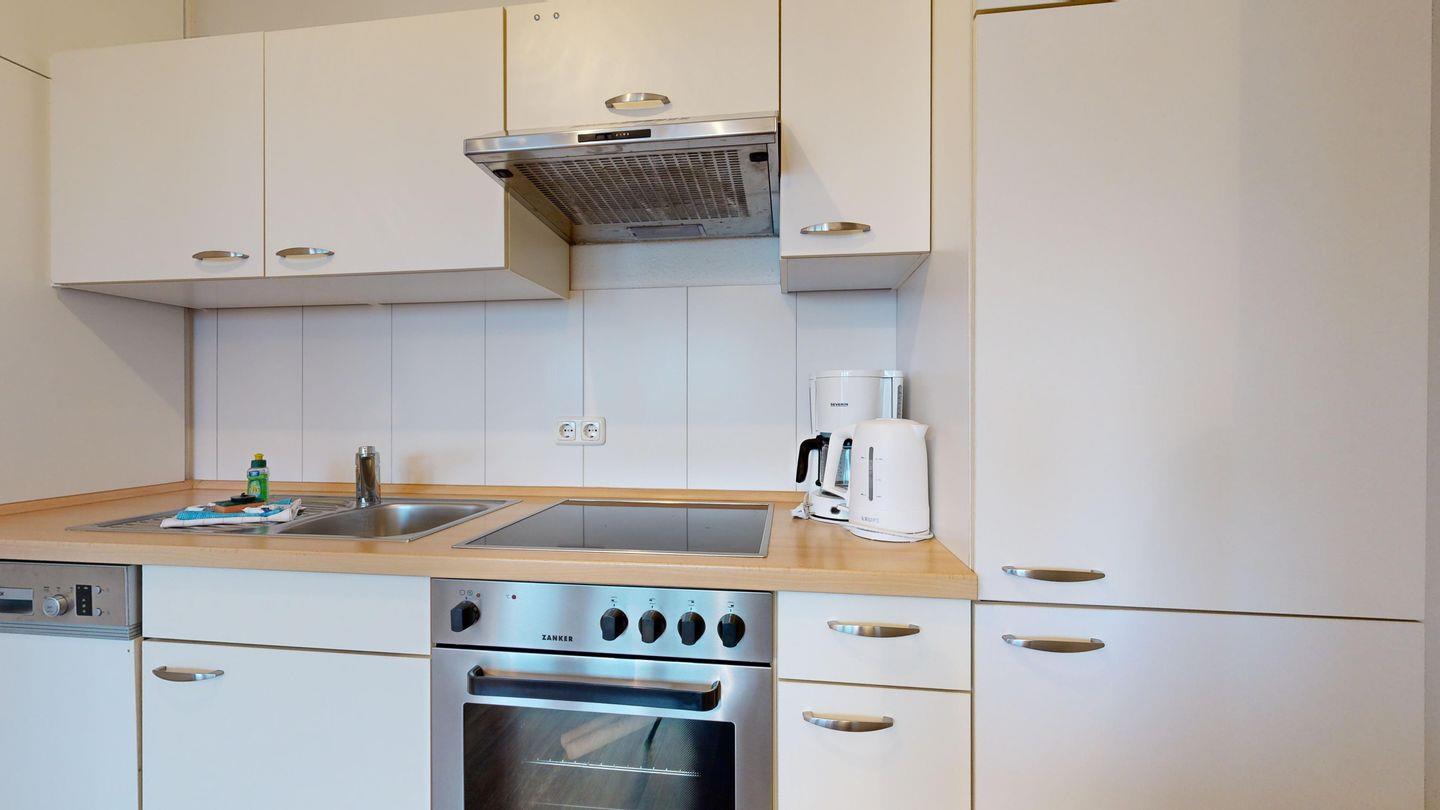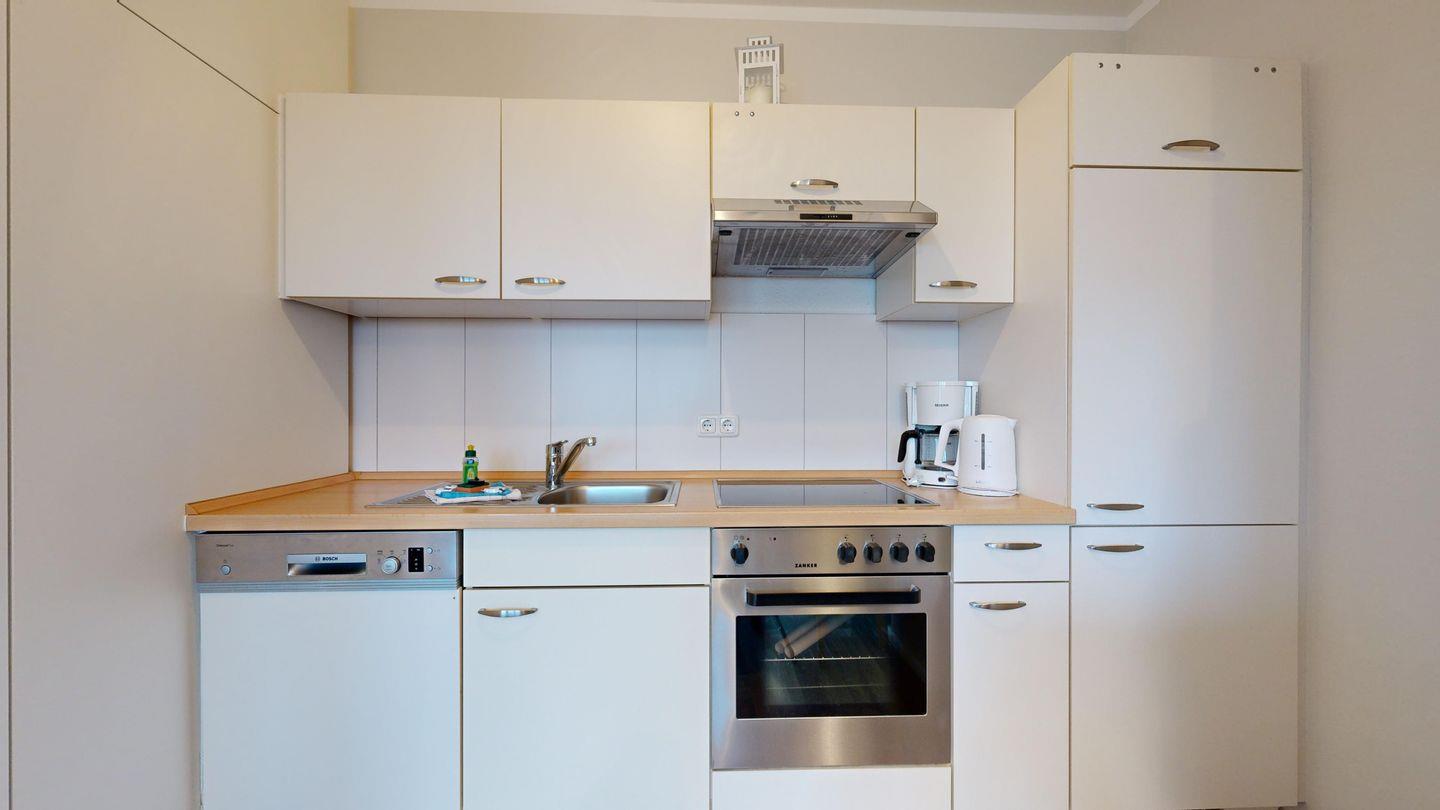 * Küche mit Ceranfeld, Kühlschrank mit Gefrierfach, Backofen, Spülmaschine, Toaster, Wasserkocher, Kaffeemaschine