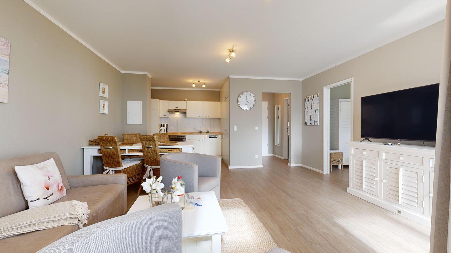 Das Bel Vital in Binz vereint moderne Exklusivität mit einer Traumlage nur wenige Schritte vom Strand – perfekt für alle, die Komfort und Entspannung suchen. Ein Fahrstuhl, Tiefgarage, Sauna und Fitnessraum im Haus sorgen zusätzlich für ein rundum angenehmes Urlaubserlebnis.