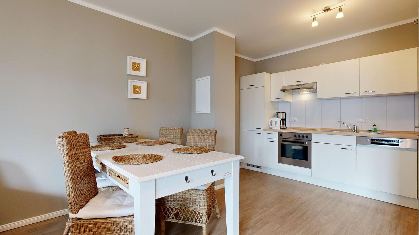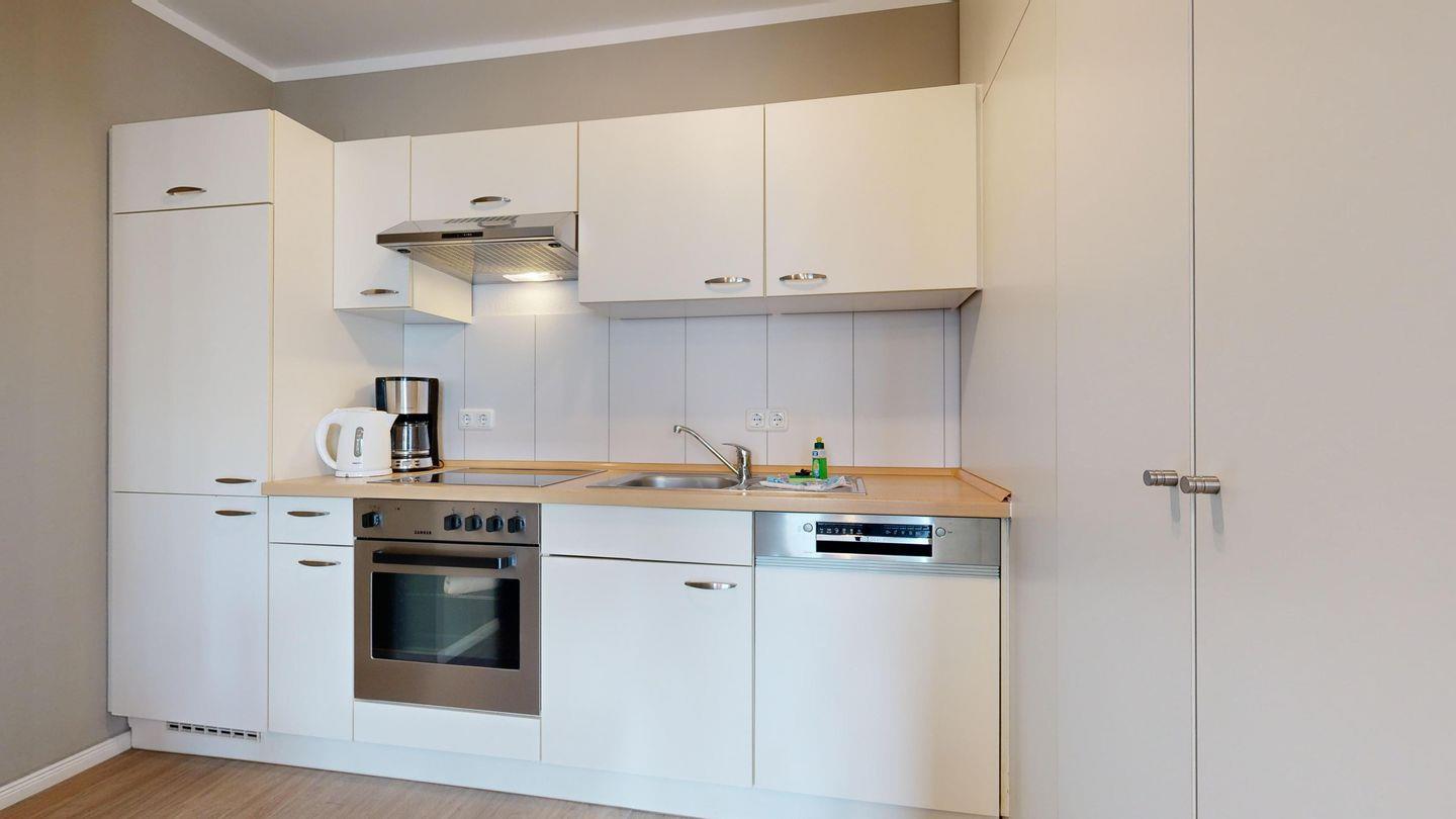 * Küche mit Ceranfeld, Kühlschrank mit Gefrierfach, Backofen, Mikrowelle, Spülmaschine, Toaster, Wasserkocher, Kaffeemaschine