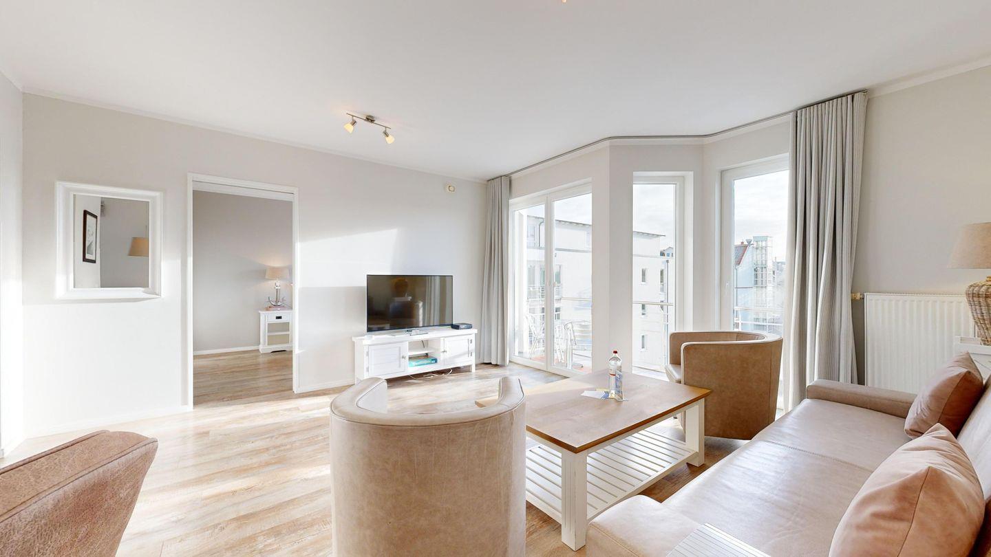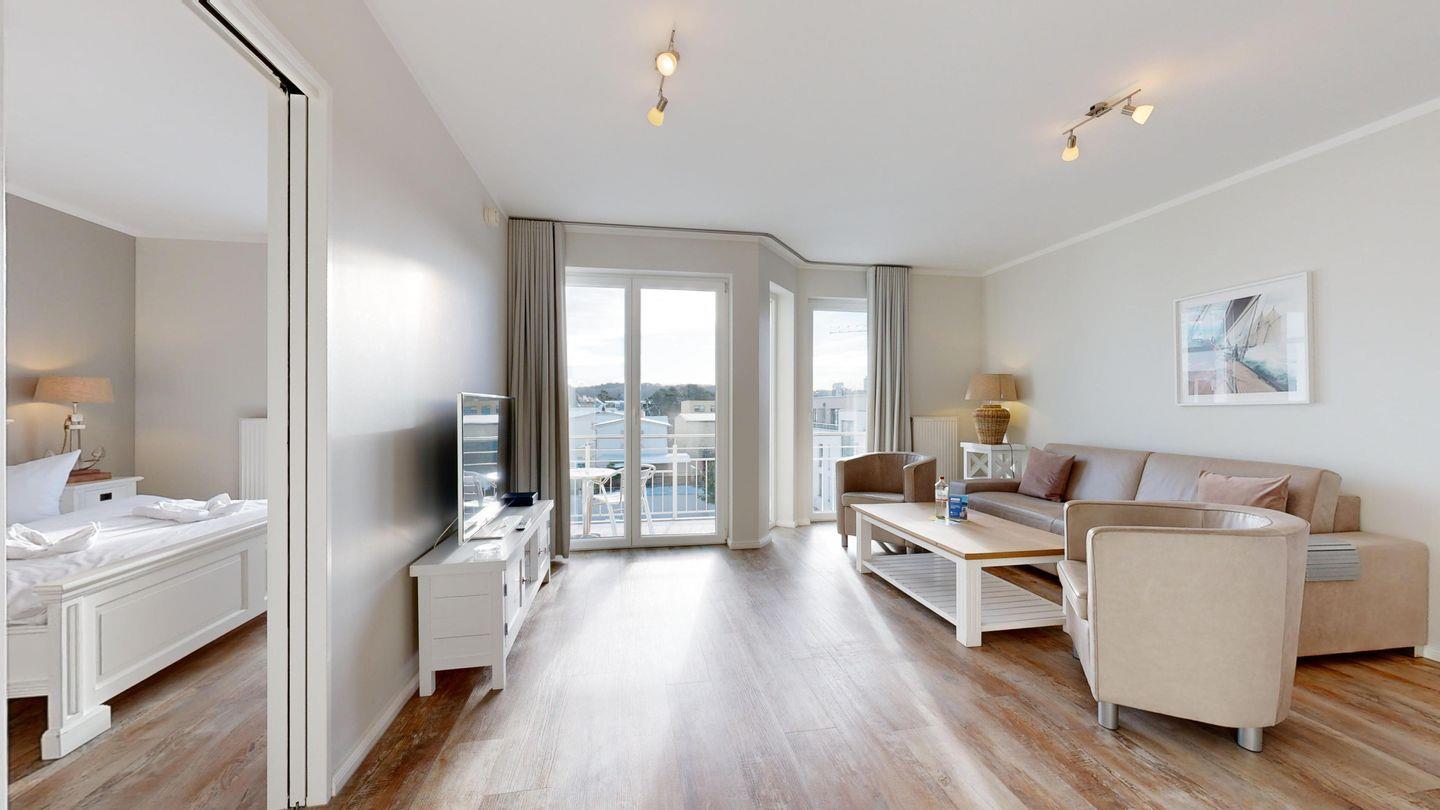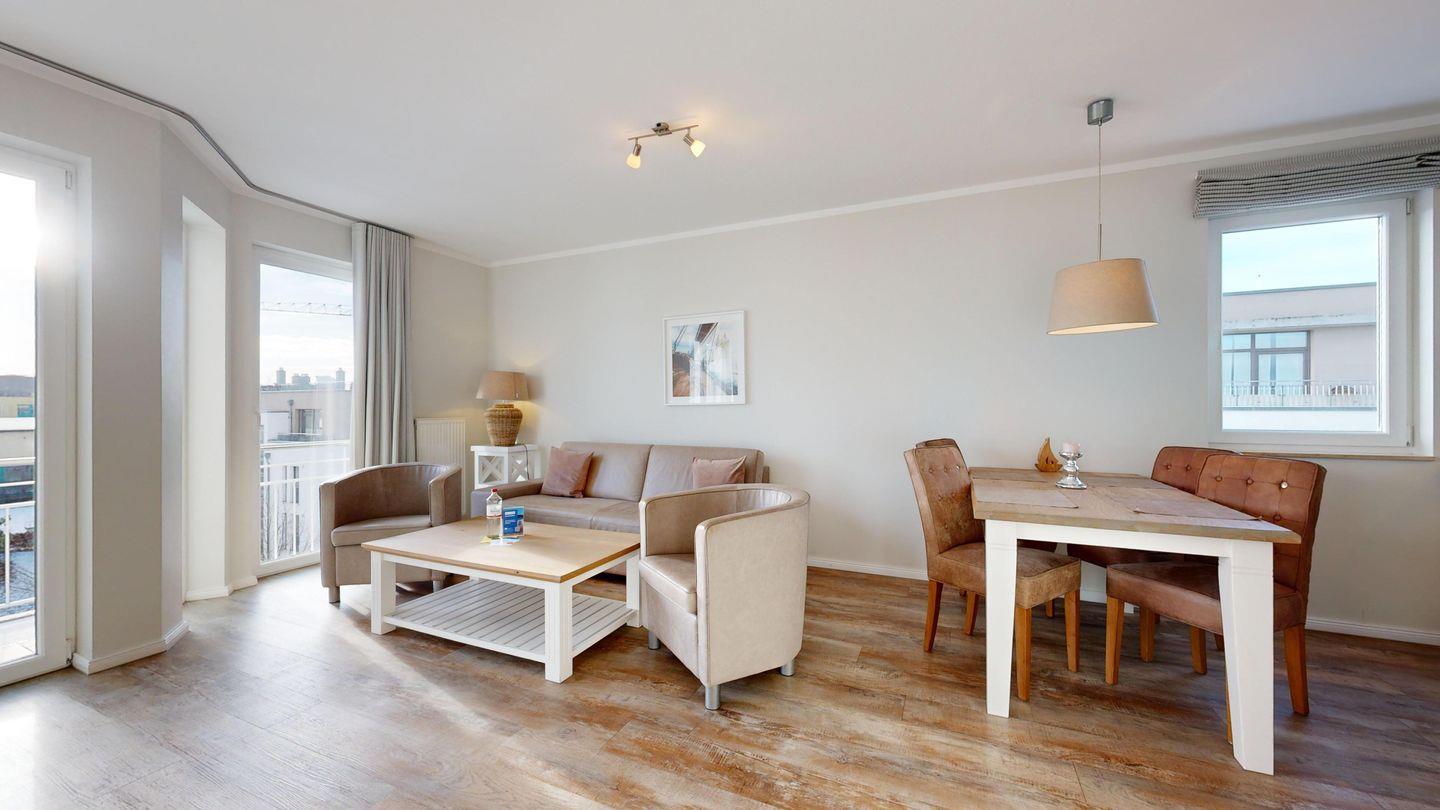 Ferienwohnung mit Balkon für 2-4 Personen mit hochwertiger Möblierung im 3. OG mit 1 Schlafzimmer (2 Zimmer / 55 m²):