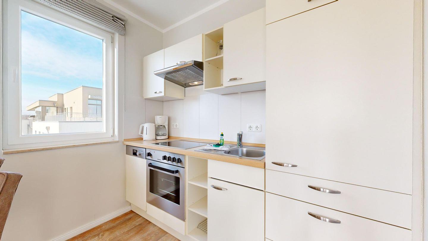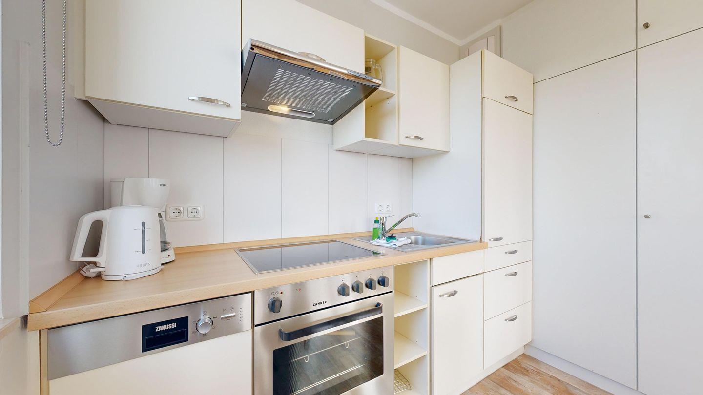 * Küche mit Ceranfeld, Kühlschrank mit Gefrierfach, Backofen, Spülmaschine, Toaster, Wasserkocher, Kaffeemaschine