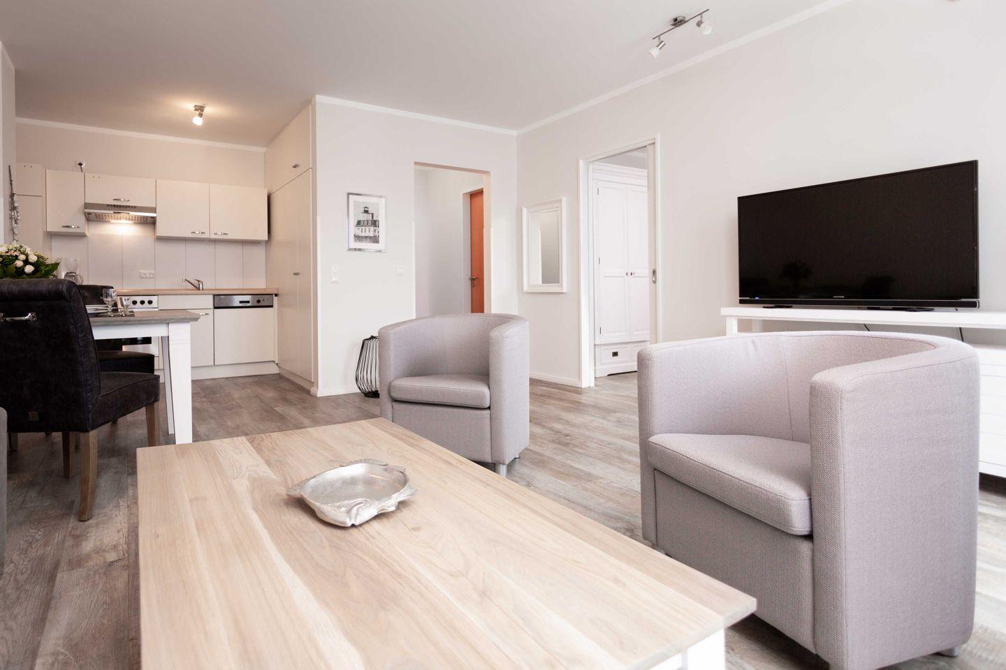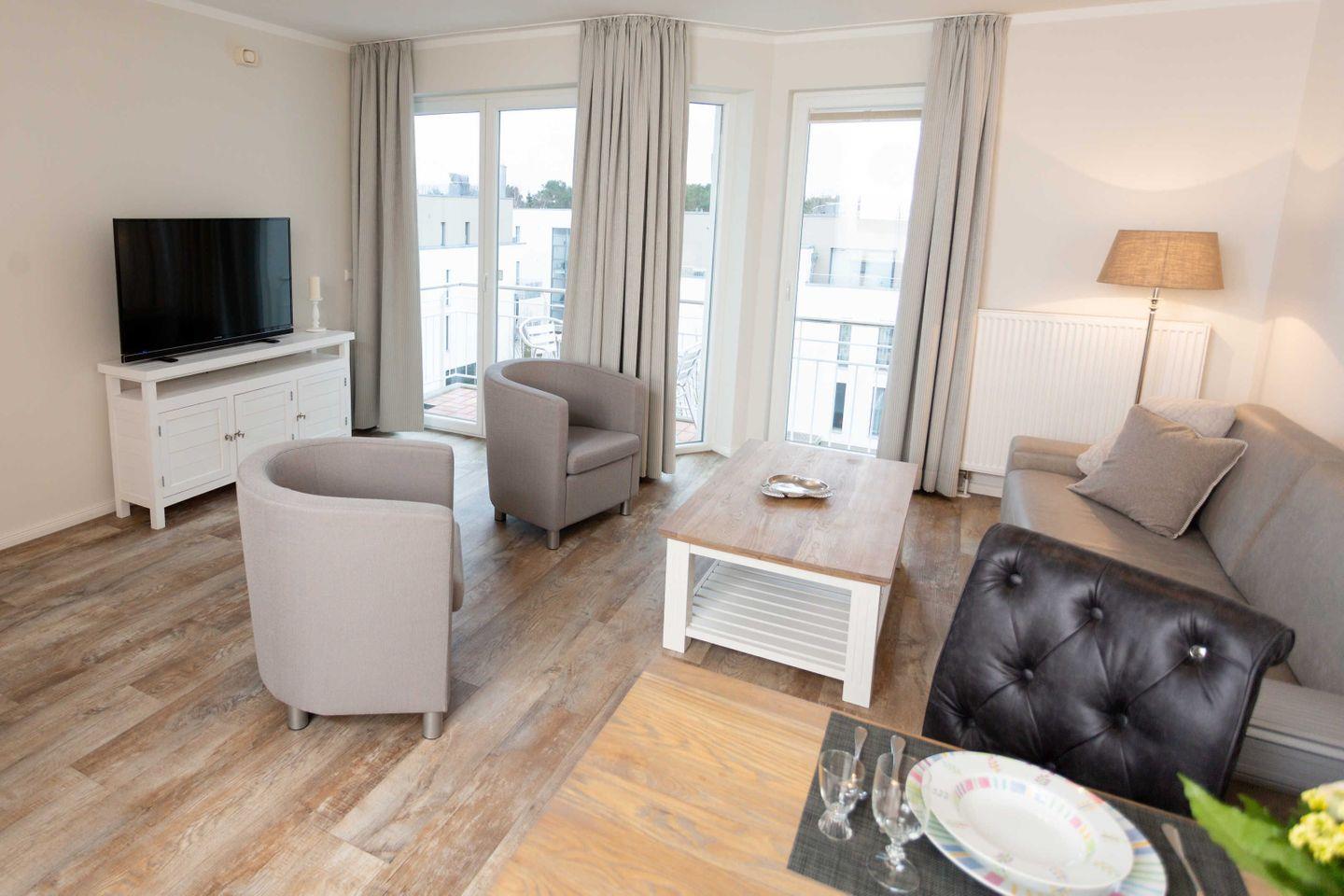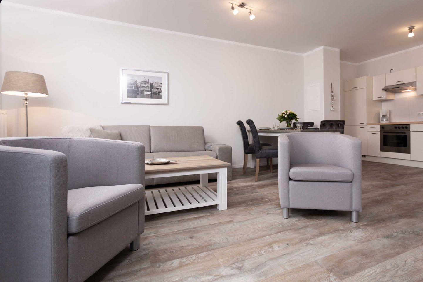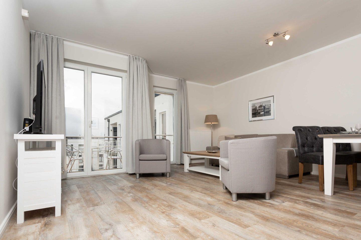 Ferienwohnung mit hochwertiger Möblierung und Balkon für 2-4 Personen im 3. OG mit 1 Schlafzimmer (2 Zimmer / 57 m²):