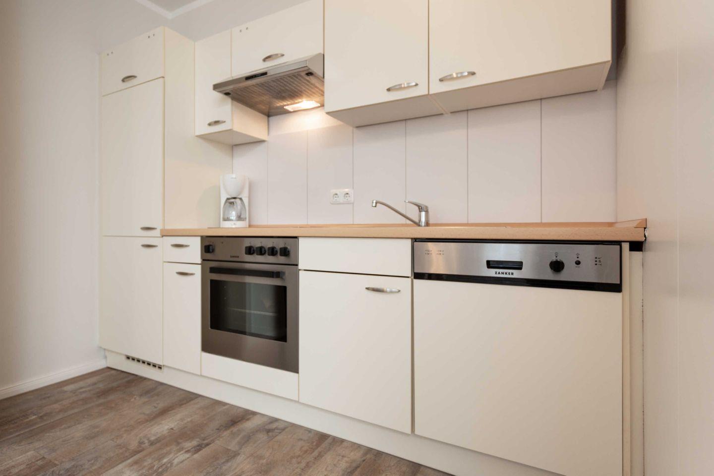 * Küche mit Ceranfeld, Kühlschrank mit Gefrierfach, Backofen, Spülmaschine, Toaster, Wasserkocher, Kaffeemaschine