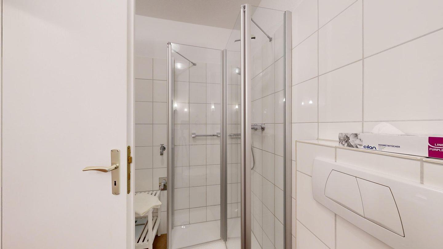 * Dusche (Tiefeinsteiger), WC, Haartrockner