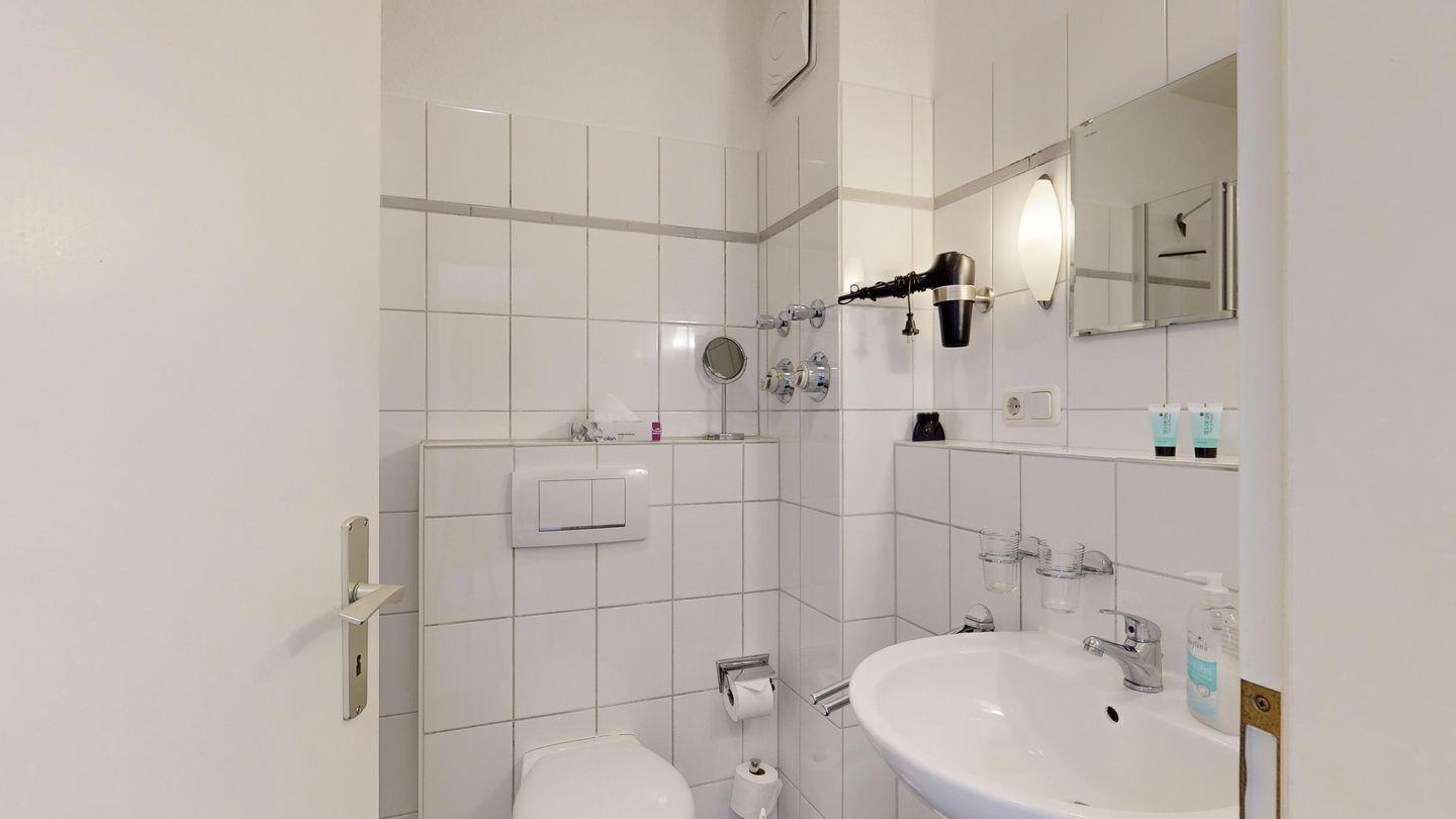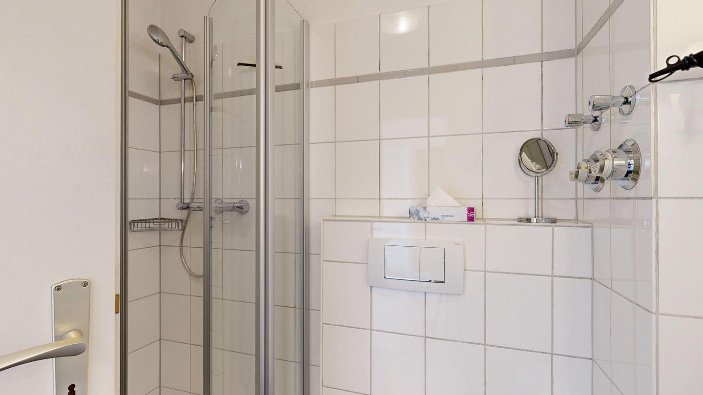 * Dusche (Tiefeinsteiger), WC, Haartrockner