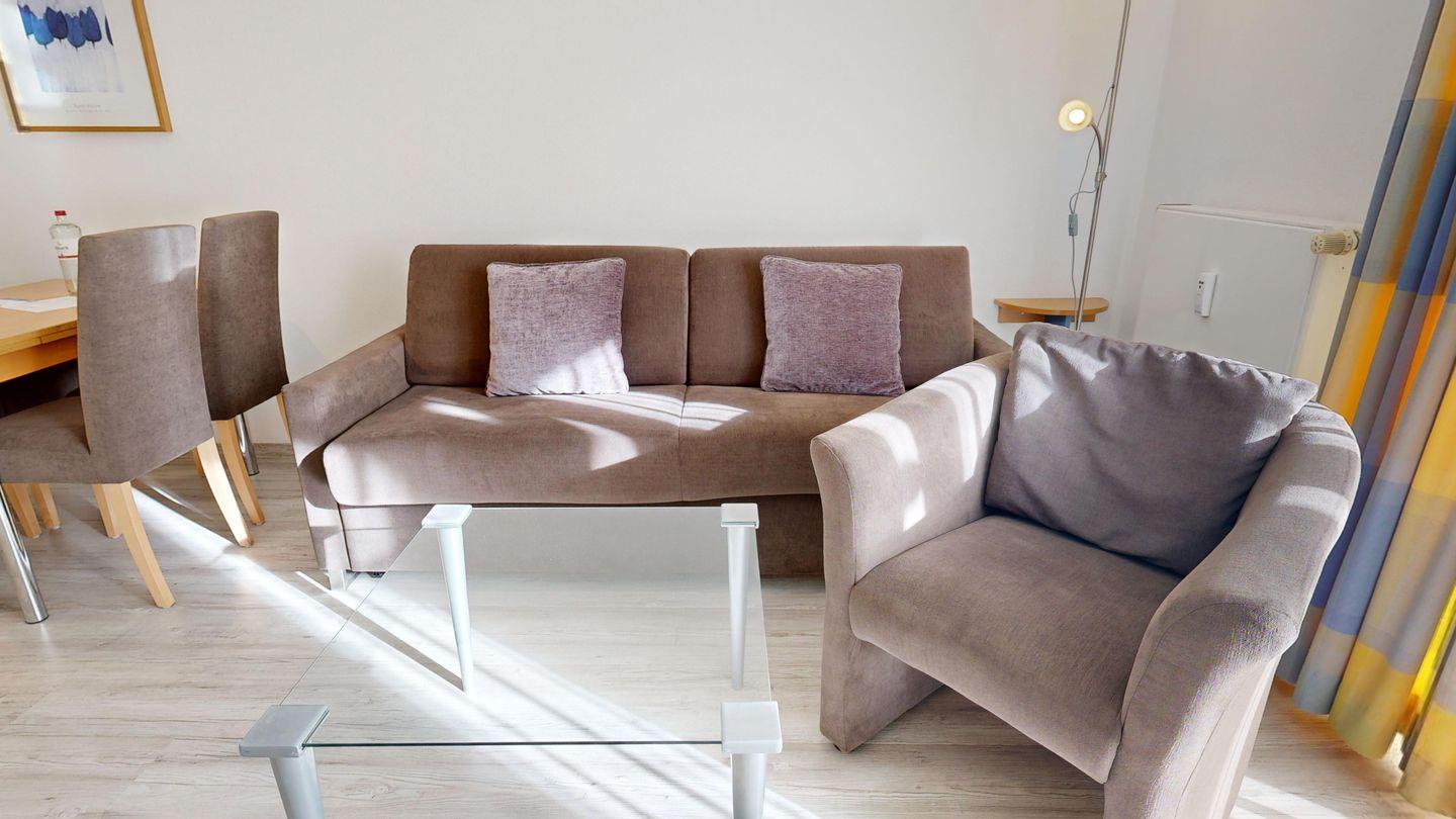 * Wohnzimmer: Couchgarnitur (Schlafgelegenheit für 2 Personen), Kabel-TV, Stereoanlage, Internetanschluss (WLAN), Esstisch