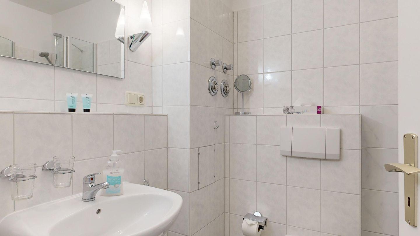 * Dusche (Tiefeinsteiger), WC, Haartrockner