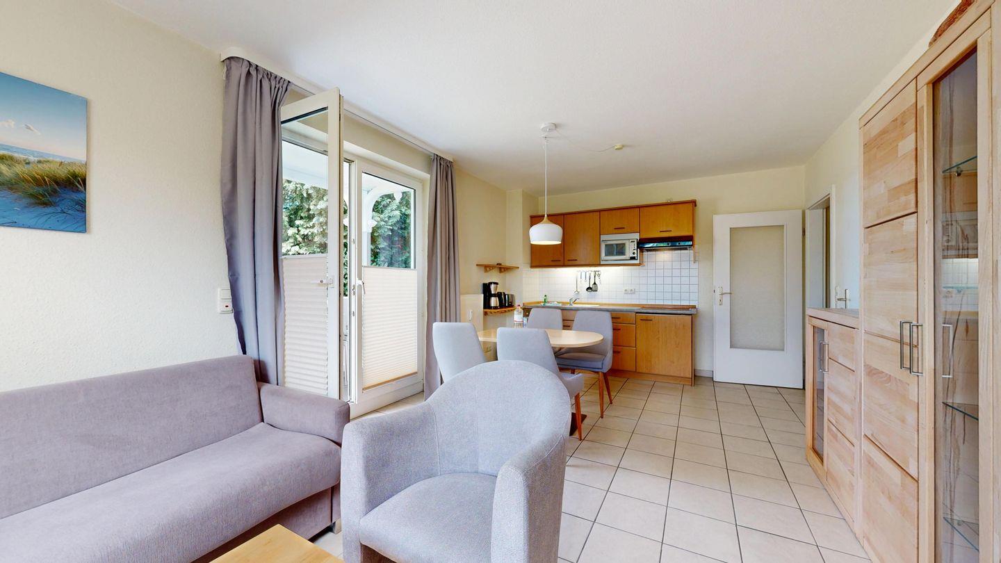 Ausstattung der Komfort-Ferienwohnung im EG, Typ B (2 Zimmer / 45 m²)