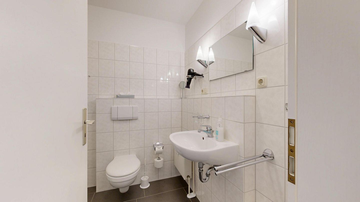 * Dusche (Tiefeinsteiger), WC, Haartrockner