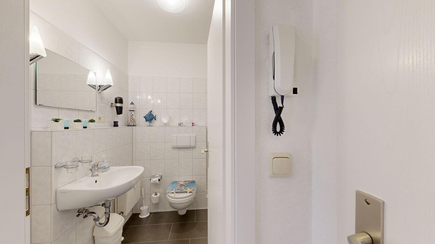 * Dusche (Tiefeinsteiger), WC, Haartrockner