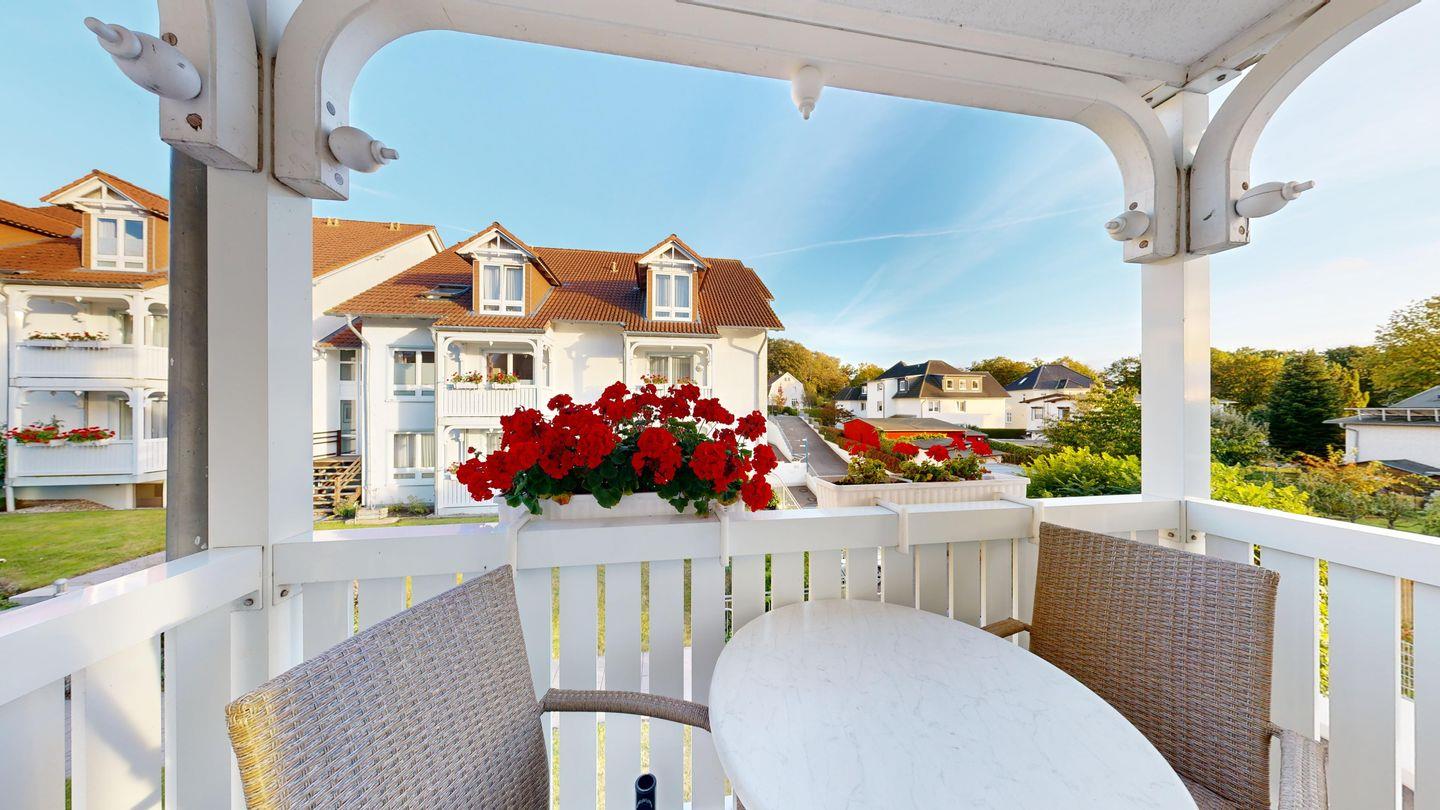 * möblierter Balkon