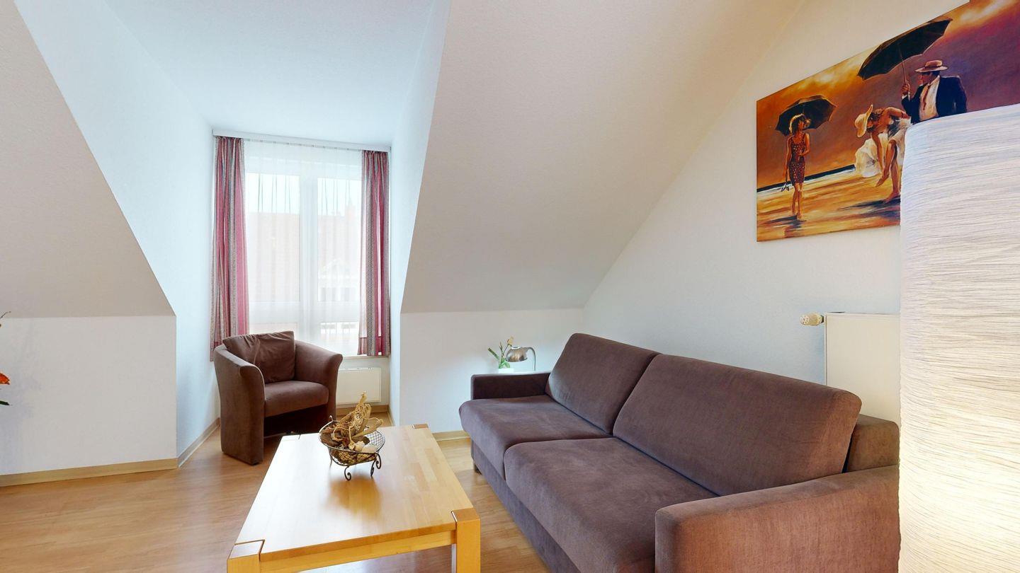 * Wohnzimmer: Couchgarnitur (Schlafgelegenheit für 2 Personen), Kabel-TV, Stereoanlage, Internetanschluss (WLAN), Esstisch