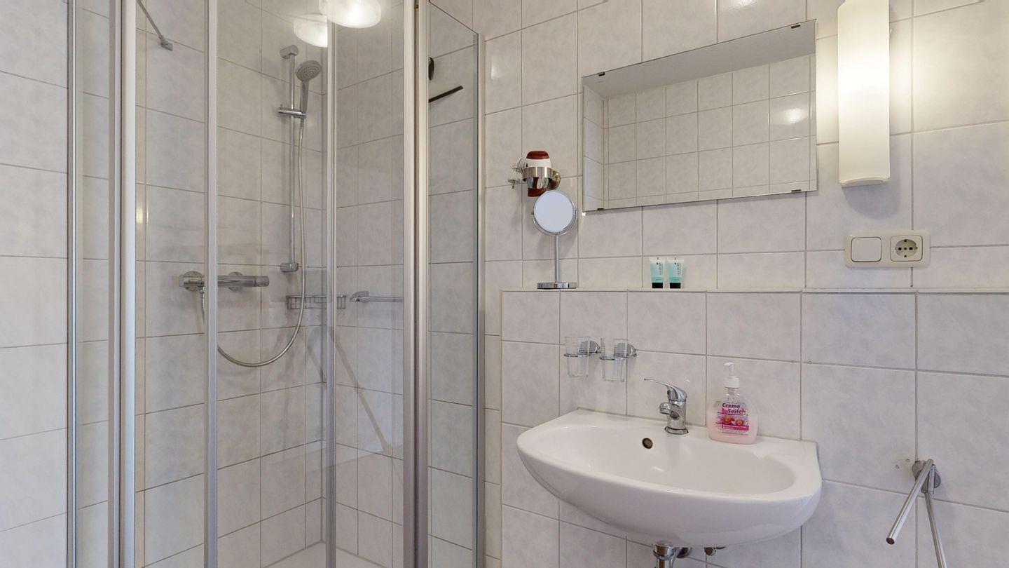 * Dusche (Tiefeinsteiger), WC, Haartrockner