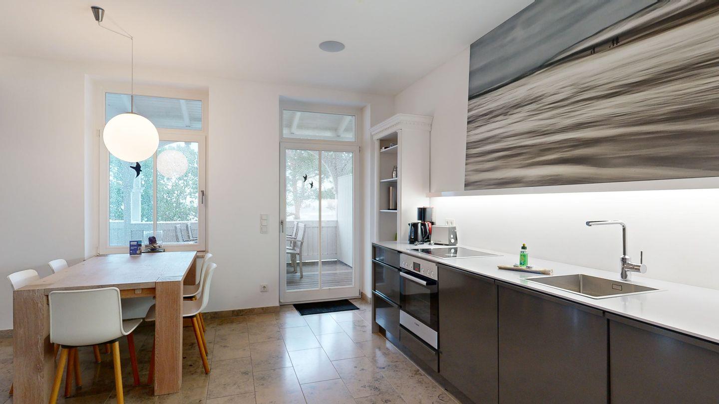 Diese exklusive Ferienwohnung im zweiten Obergeschoss überzeugt mit hochwertiger Ausstattung und einem großen Balkon mit Blick auf die Ostsee. Mit drei Zimmern, darunter zwei Schlafzimmer, bietet sie Platz für bis zu 6 Personen. Die moderne Küche und das stilvolle Badezimmer sorgen für zusätzlichen Komfort. Die zentrale Lage ermöglicht es Ihnen, das Ostseebad Binz in vollen Zügen zu genießen.