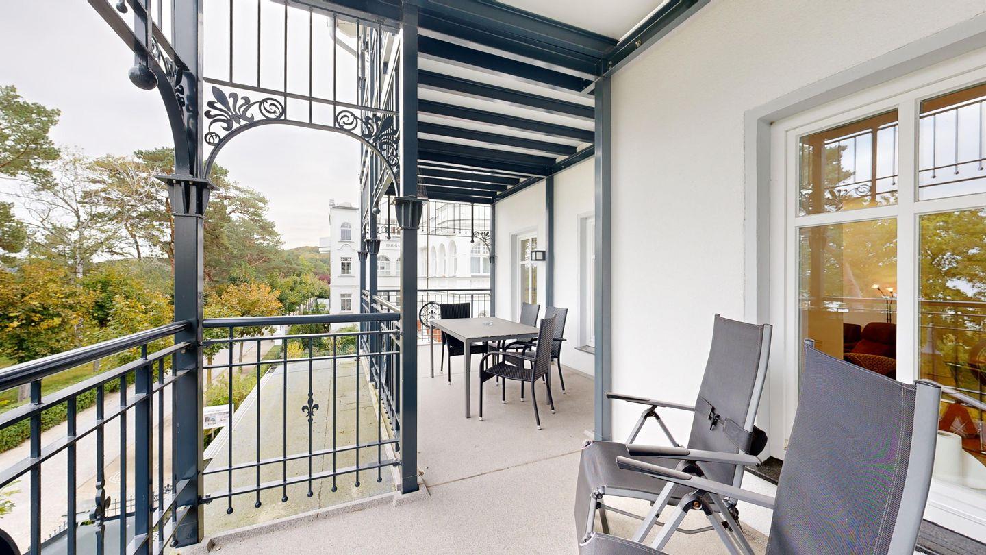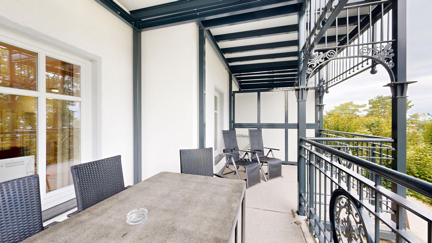 Großer Balkon mit fantastischen Blick auf Ostsee, Strand und Seebrücke.
