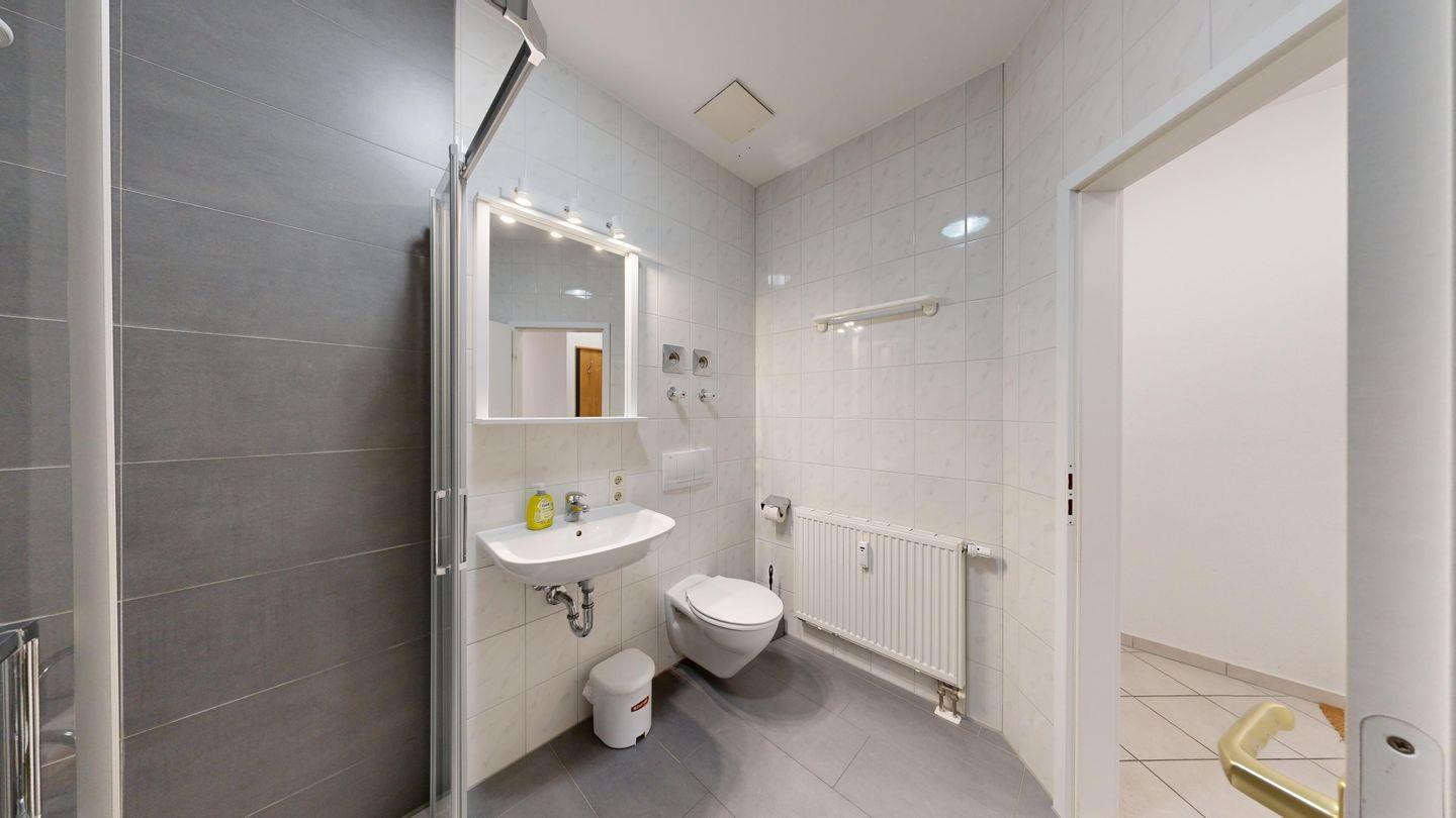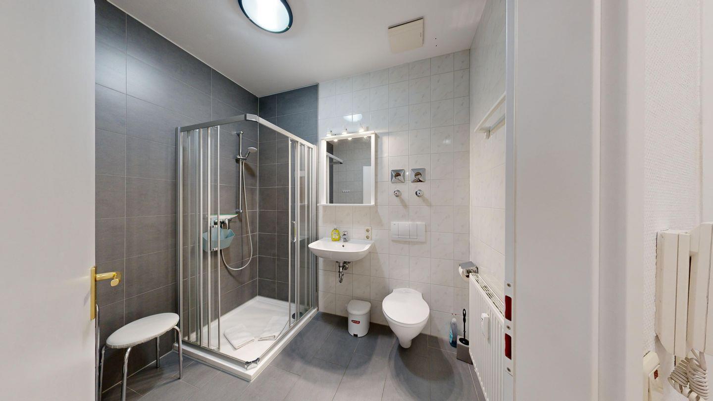 * 1 Badezimmer mit Dusche, WC und Föhn