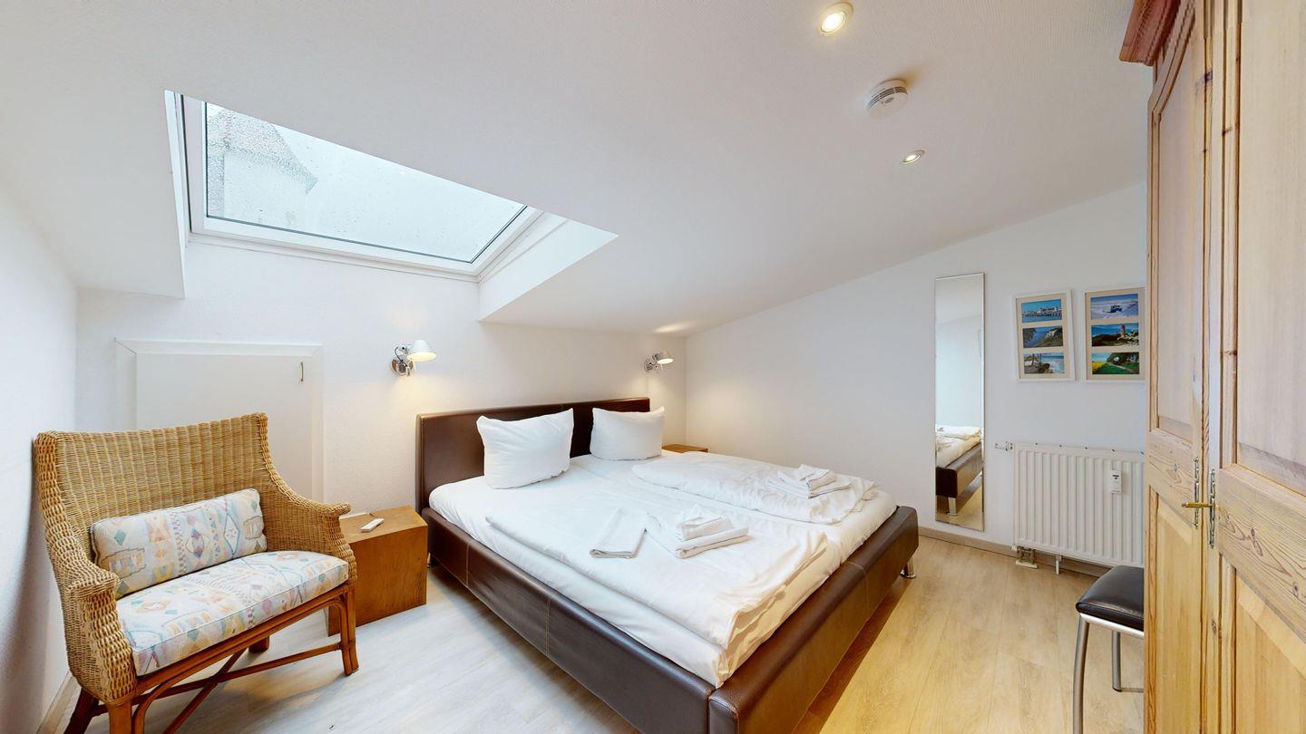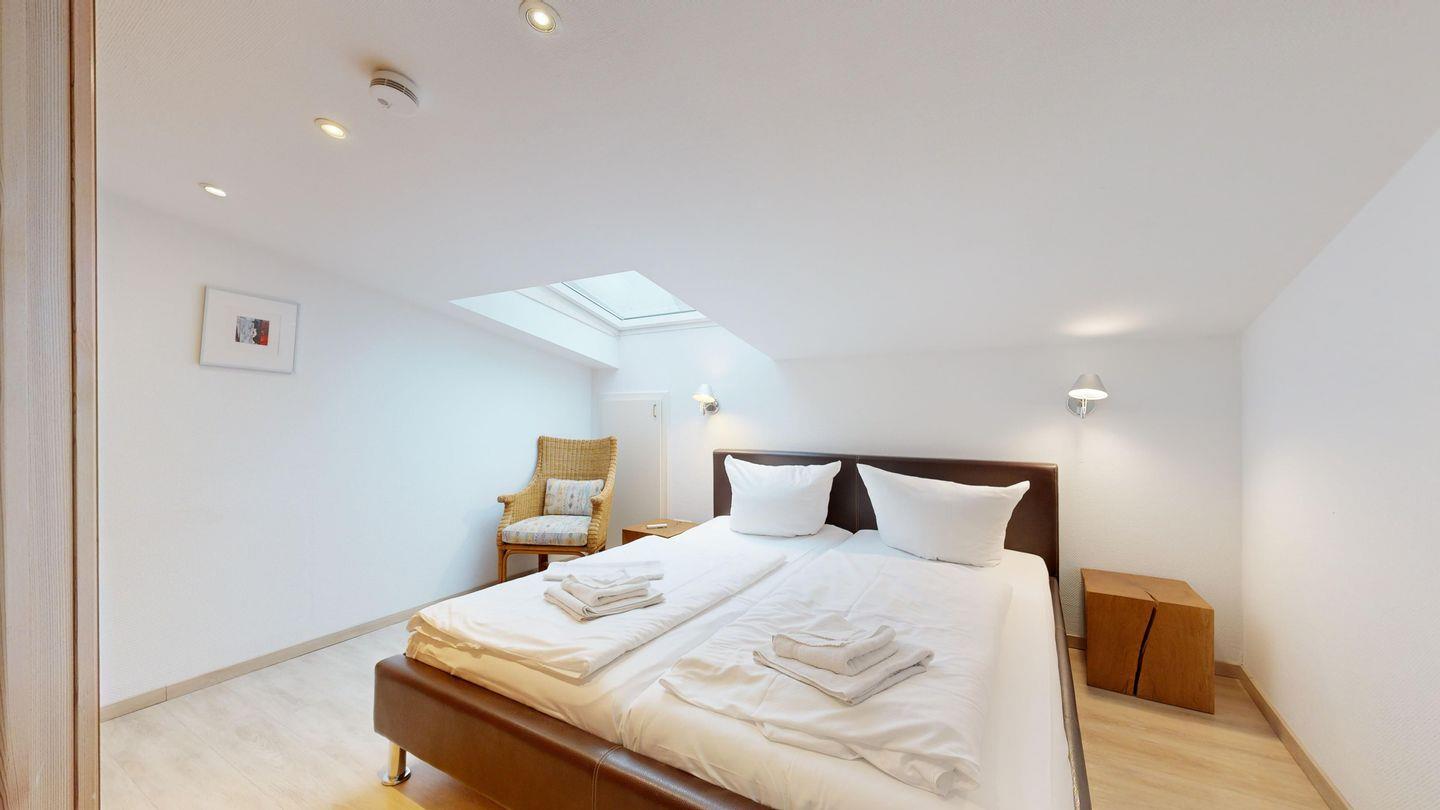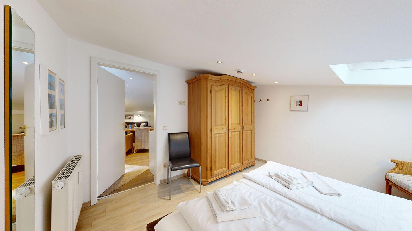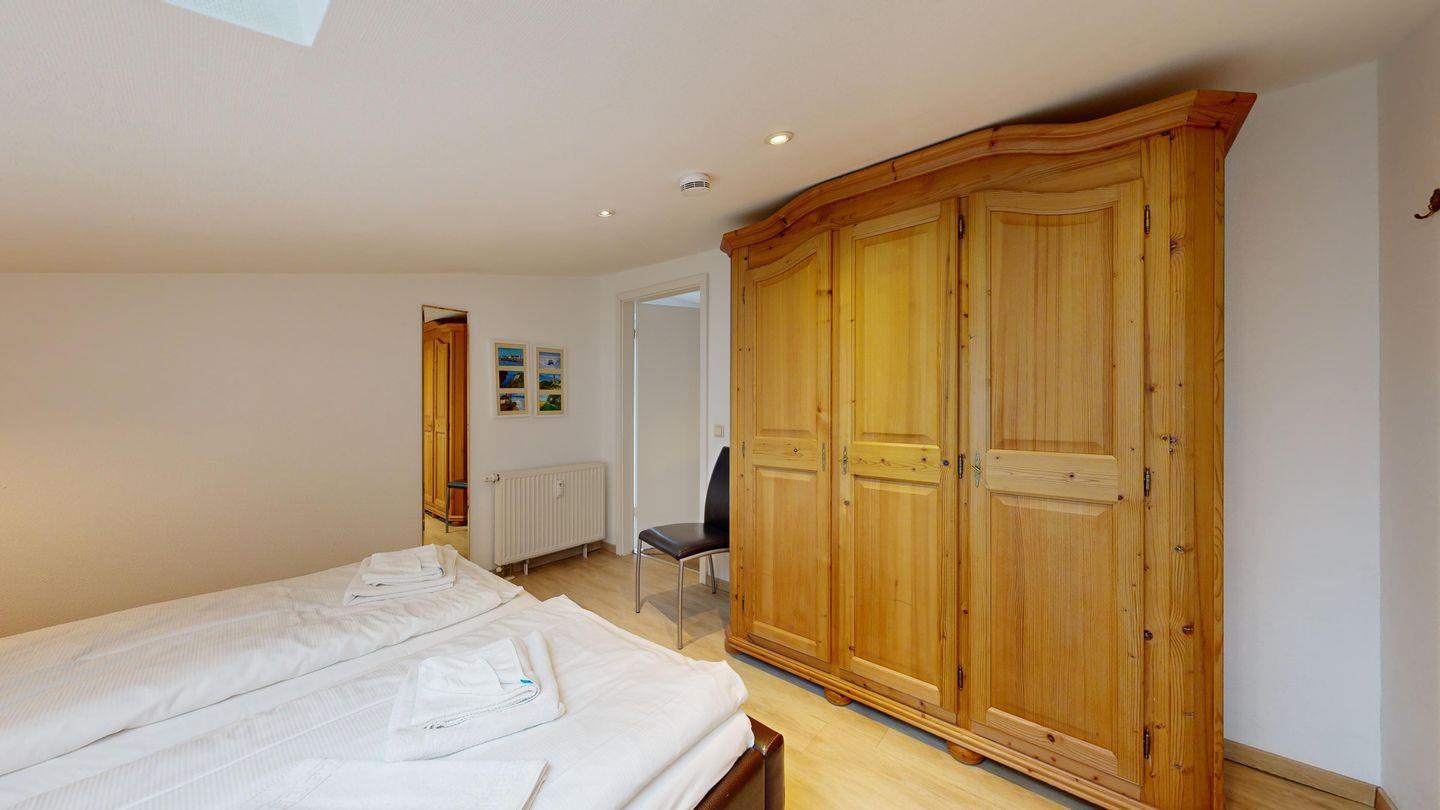 * 1 Schlafzimmer mit einem Doppelbett und großem Kleiderschrank, Dachschrägen