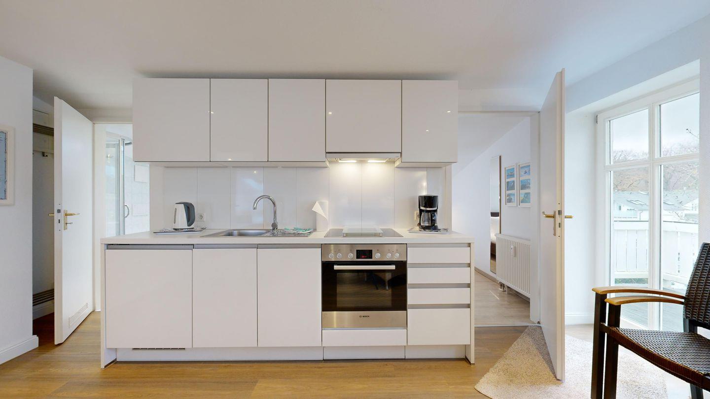 Genießen Sie unvergessliche Stunden in direkter Strandlage – auf Ihrem sonnigen Südbalkon können Sie den Tag mit einer frischen Brise beginnen. Eine stilvolle Küchenzeile lädt zum gemeinsamen Kochen ein, während die moderne Einrichtung zum Entspannen einlädt. Ihren eigenen Strandkorb erwartet Sie gleich am Meer – Urlaubsfeeling pur!