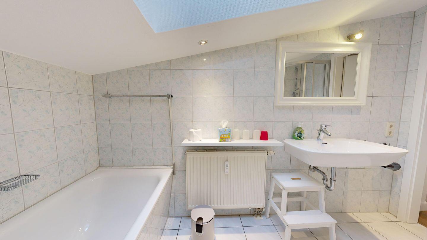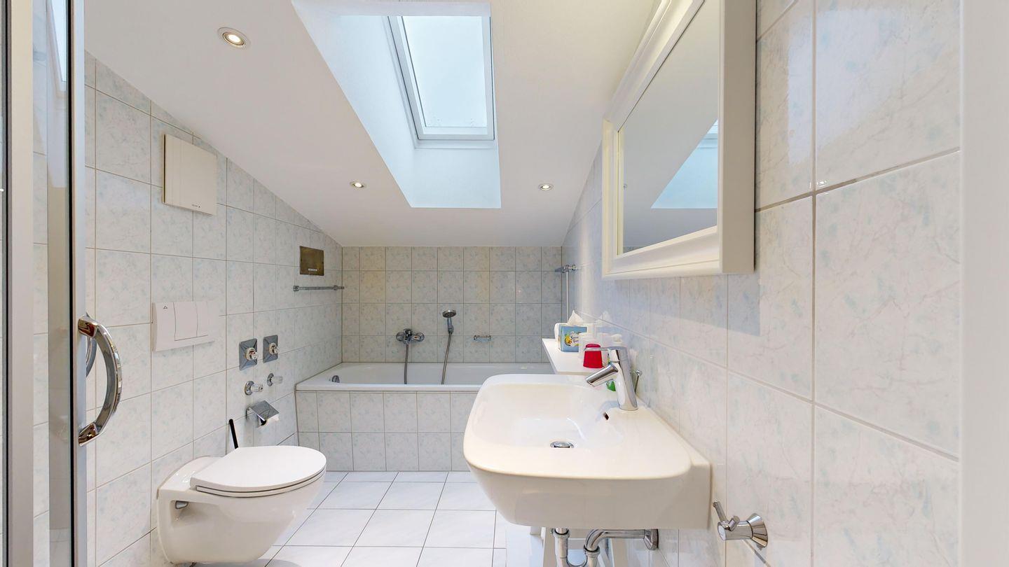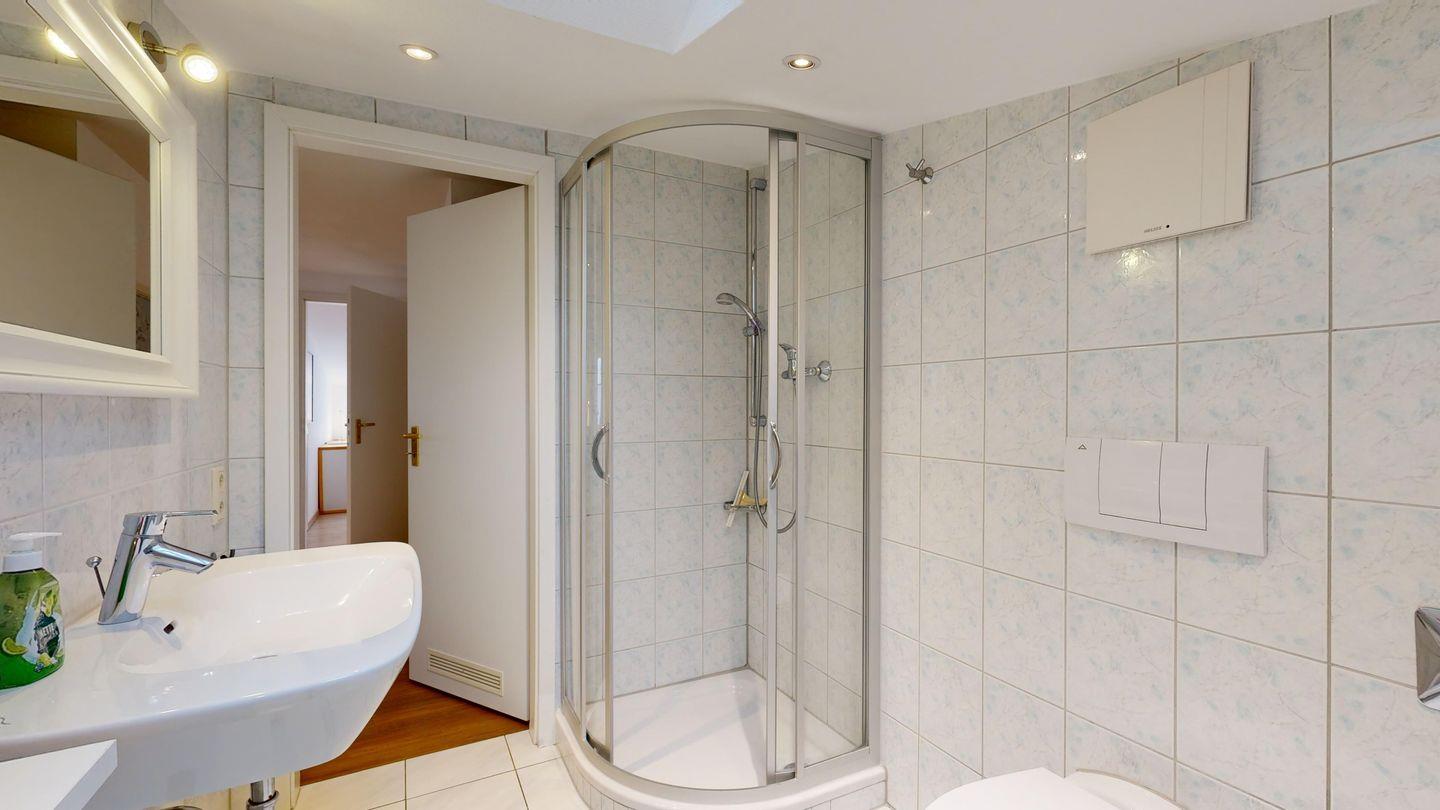 * 1 Badezimmer mit Dusche, Badewanne, WC, Föhn
