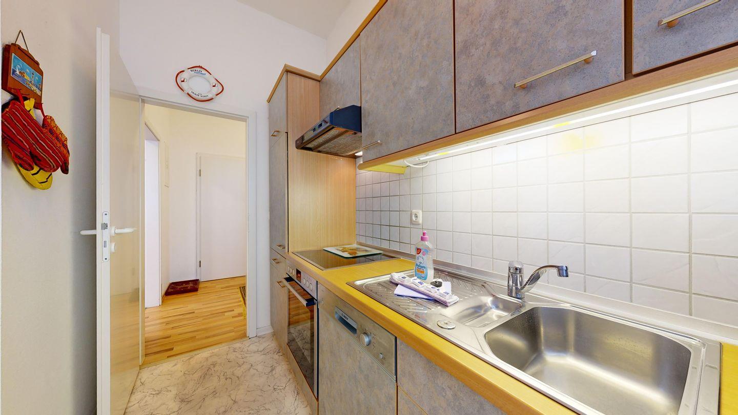 * Separate Küche: Moderne Küchenzeile, E-Herd mit Backofen, Spülmaschine, Kaffeemaschine, Wasserkocher und Toaster