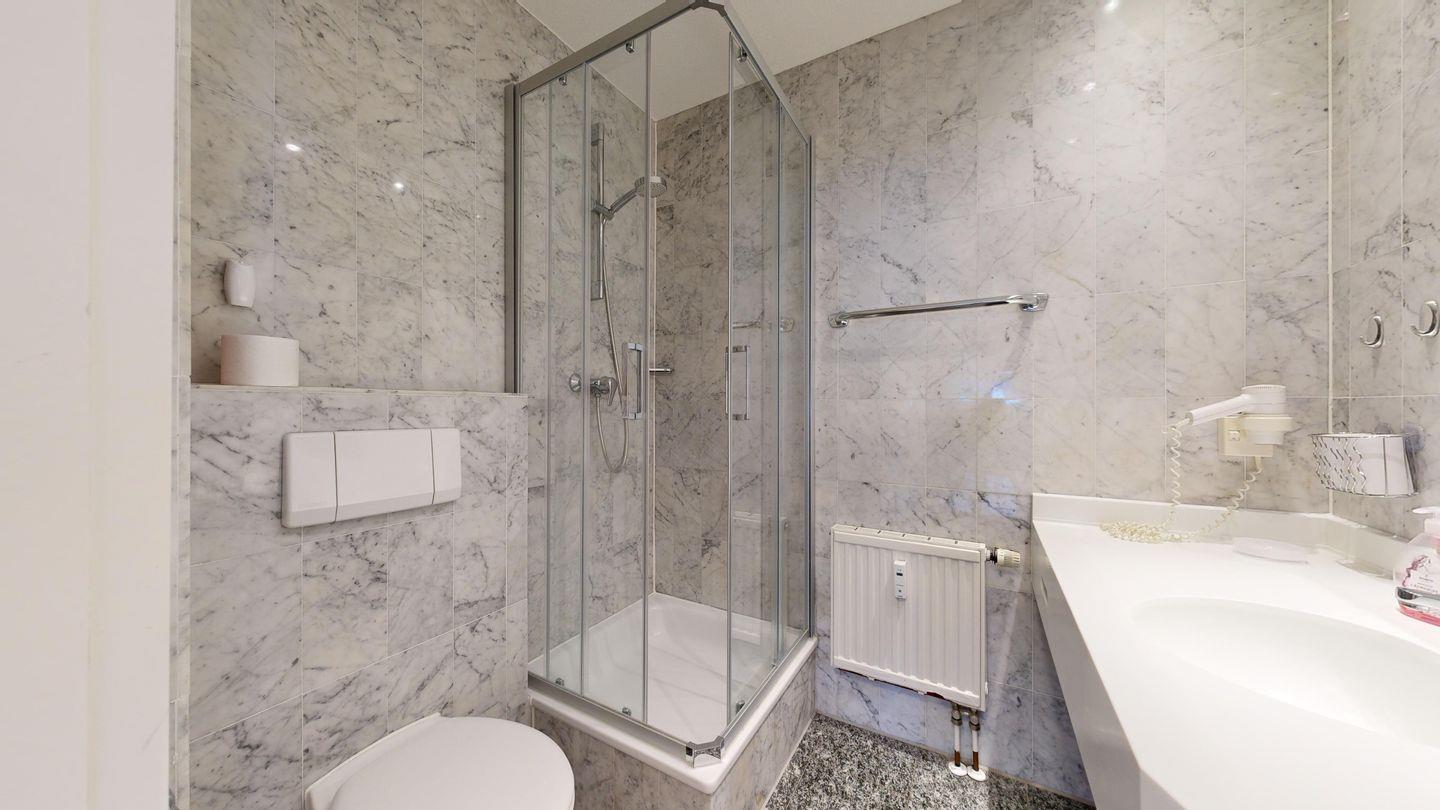 * 1 Badezimmer mit Dusche, WC und Föhn