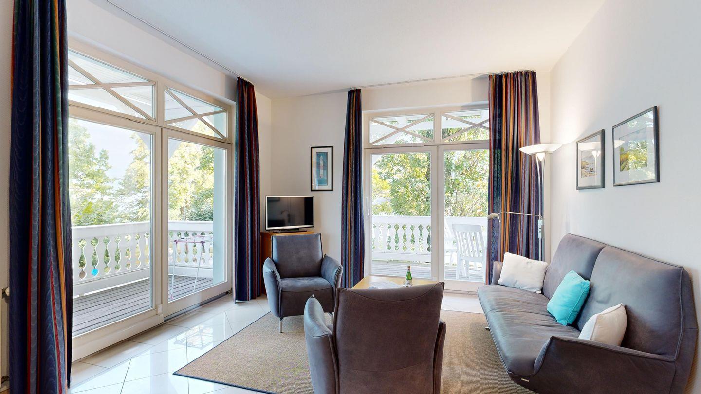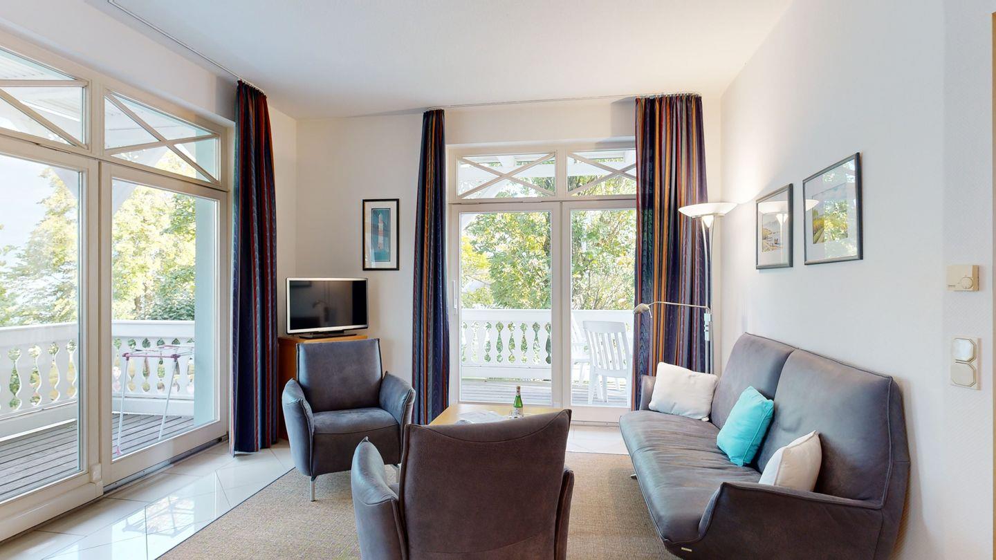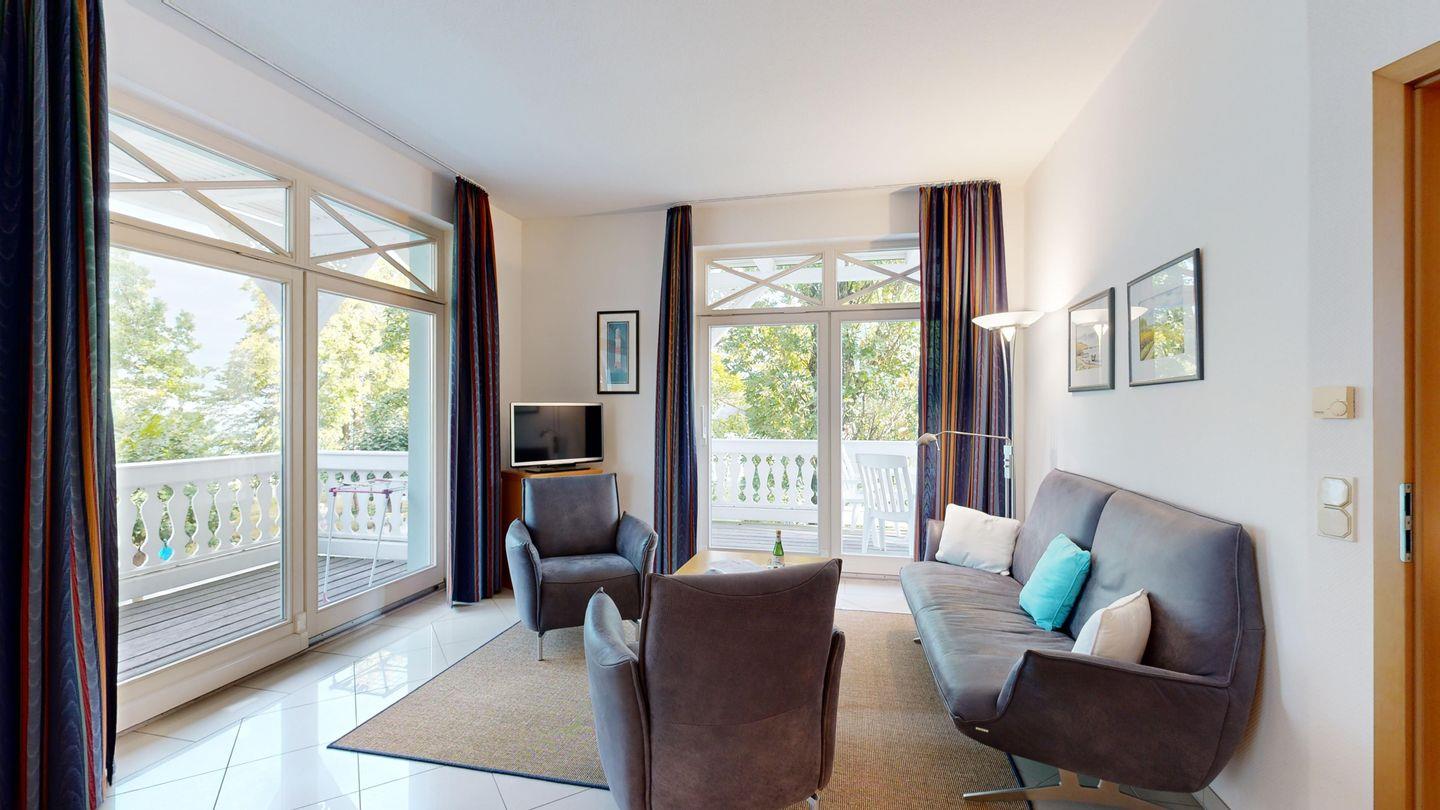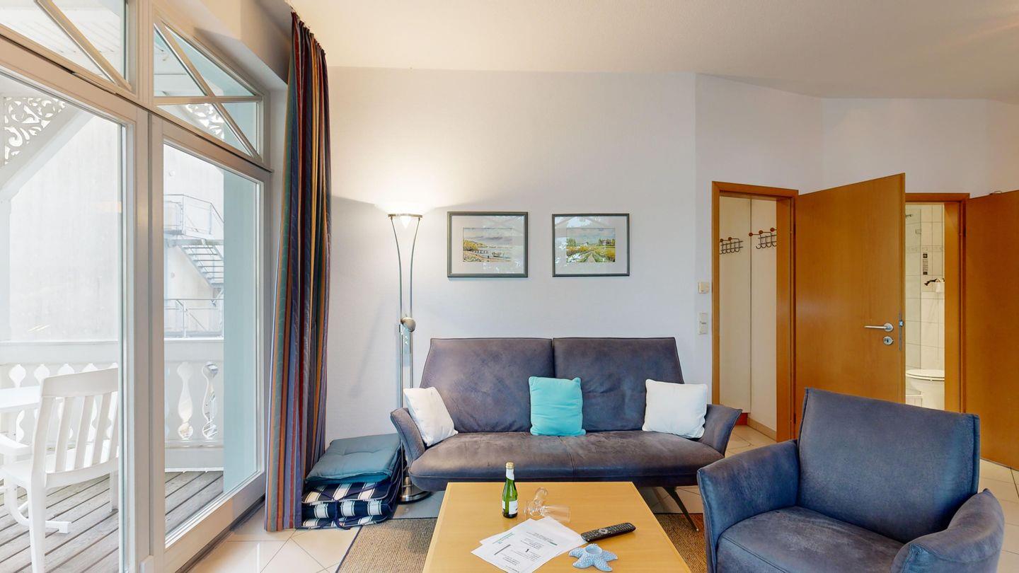 Exklusiver Ostseeblick inklusive: Genießen Sie Ihren Urlaub auf dem großen Balkon dieser edlen Wohnung, während die Wellen sanft rauschen. Fußbodenheizung sorgt für wohlige Wärme, und die Sauna im Haus rundet das Wohlfühlpaket perfekt ab.